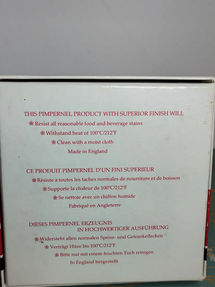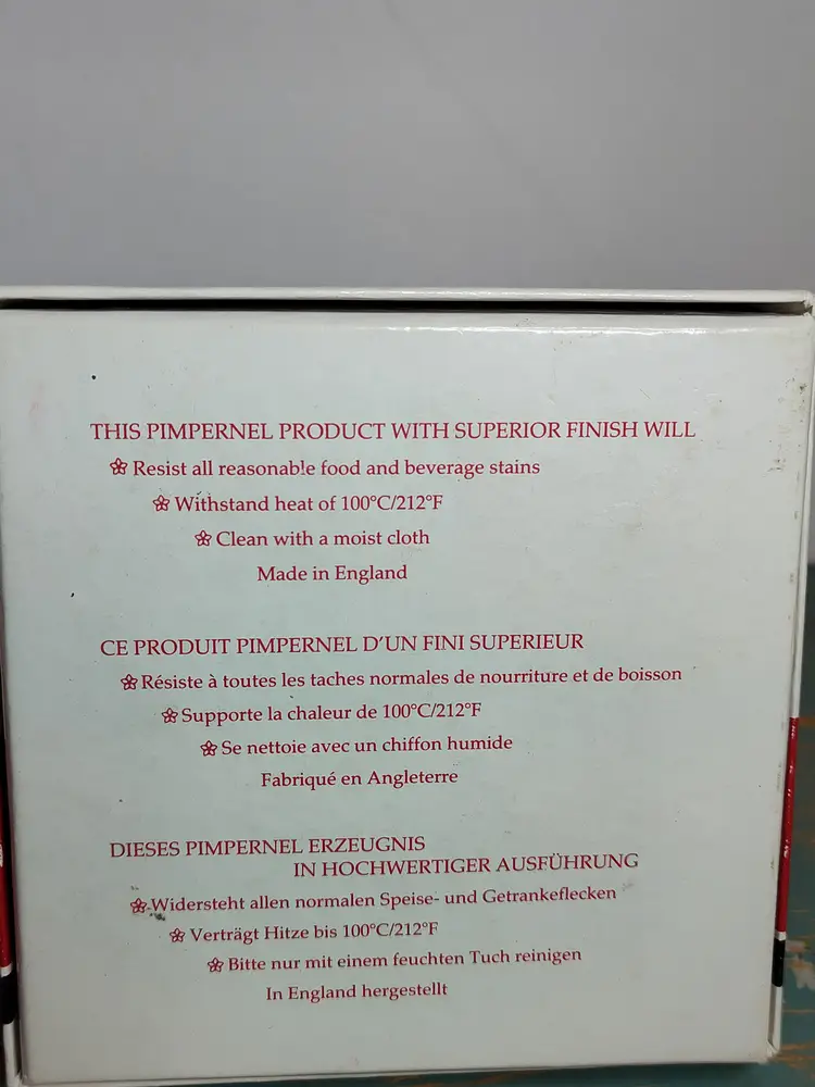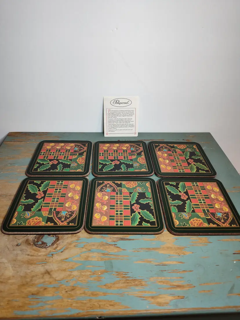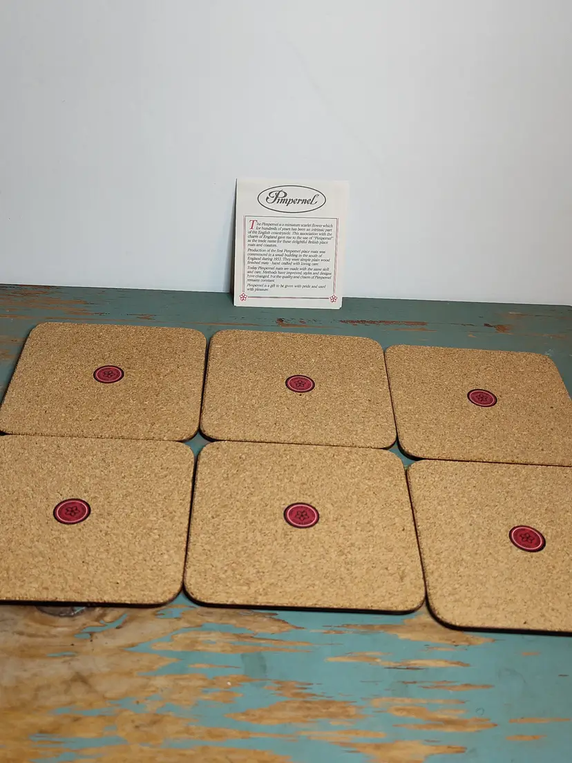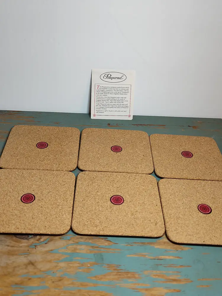 NOS set of 6 vintage Pimpernel coasters with paperwork & stamps on back.