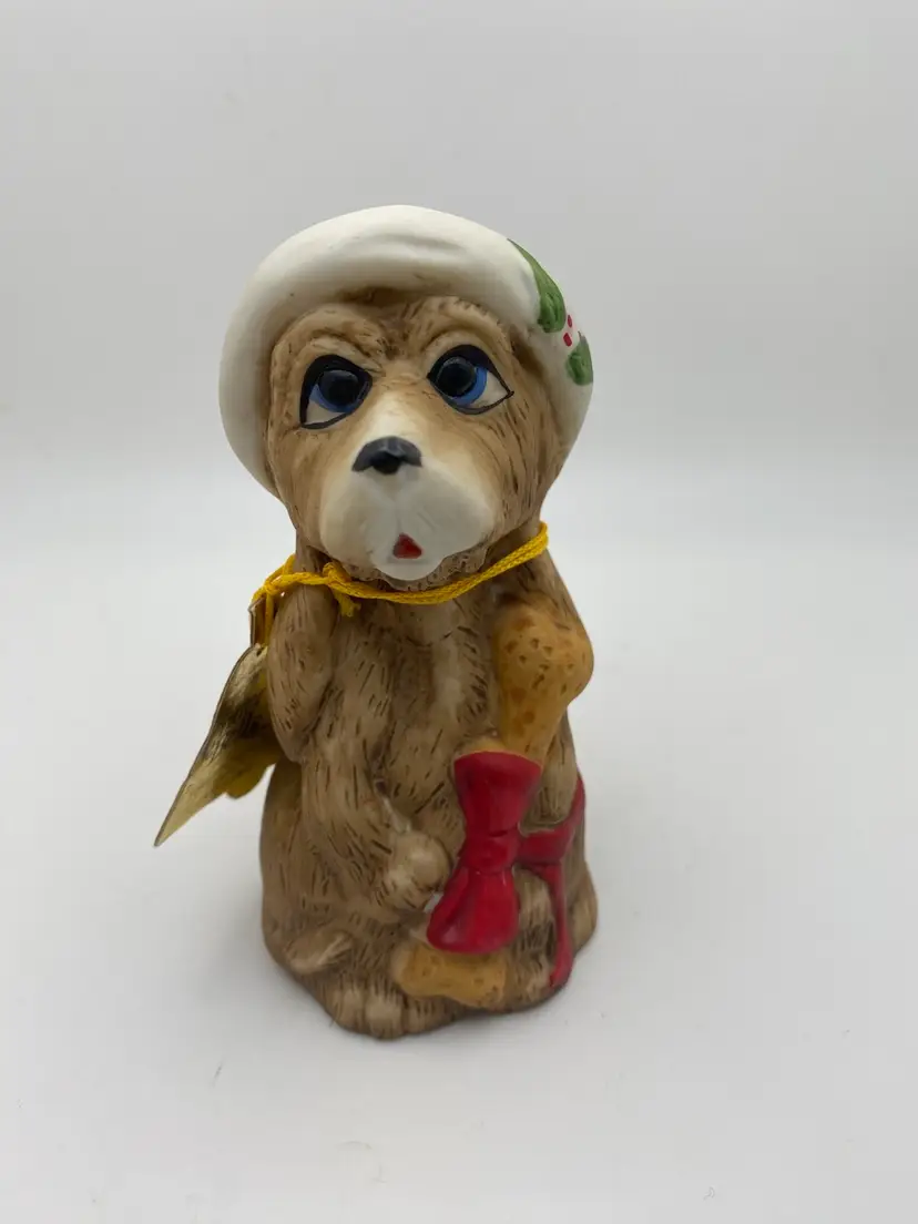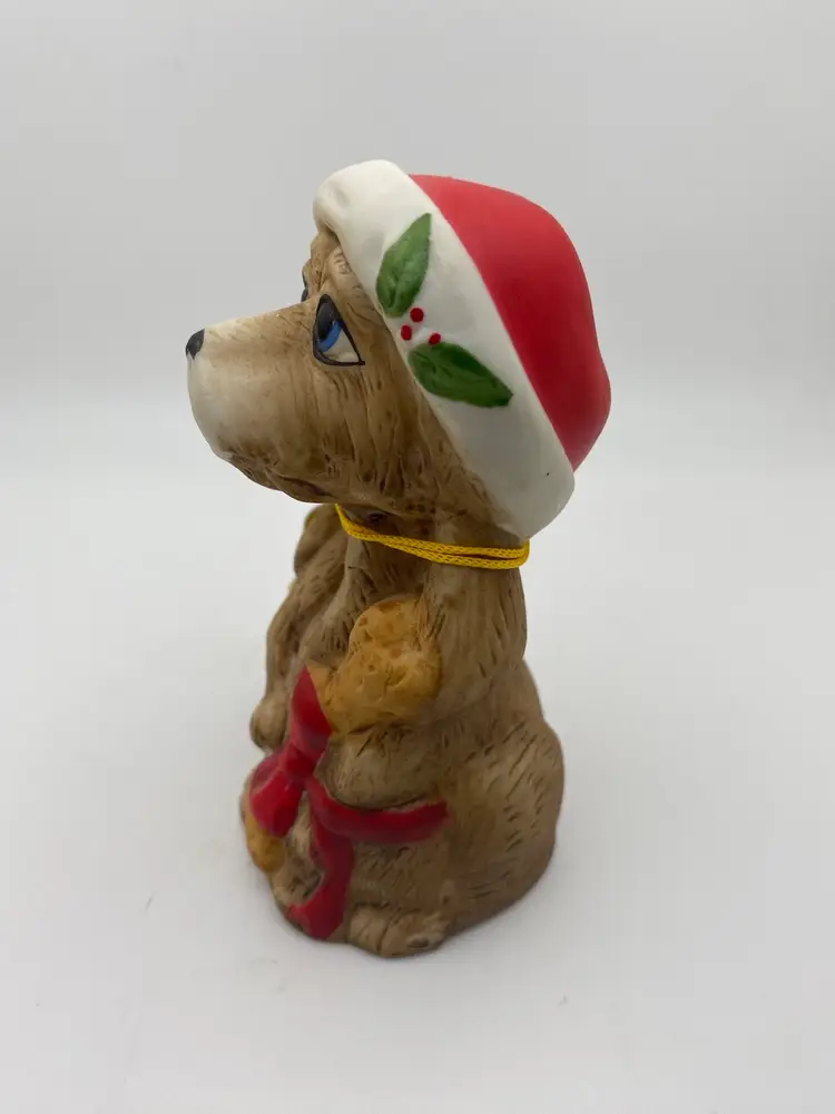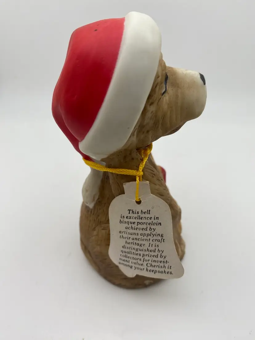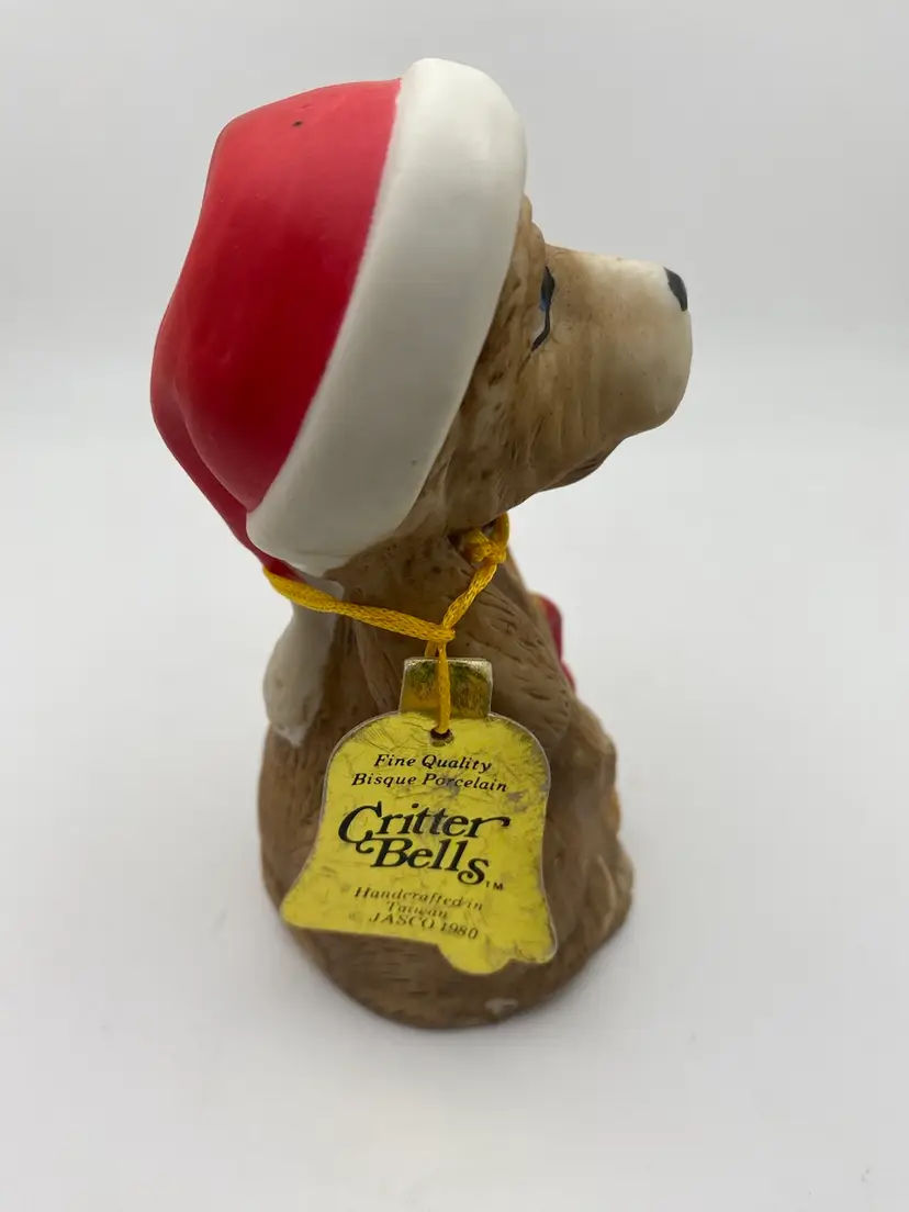 Vintage Christmas Santa Dog Jasco Critter Bells Handcrafted Bisque Bell 4 Inch original tag no chips or cracks