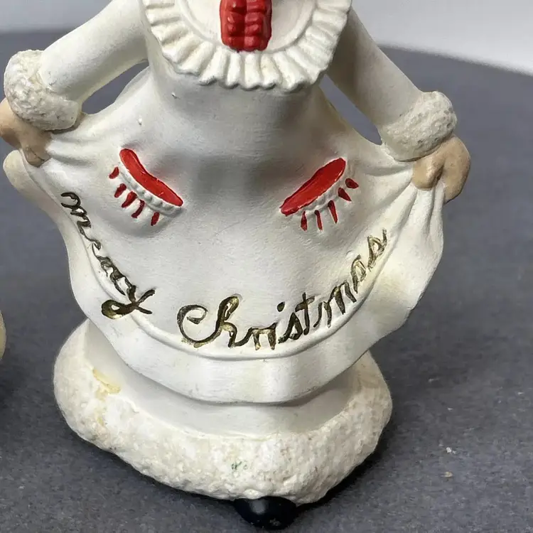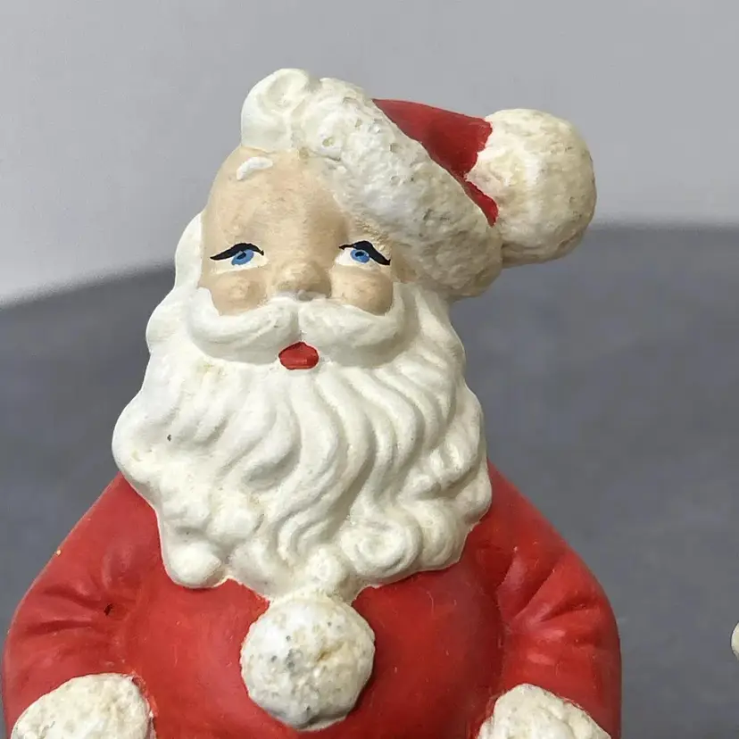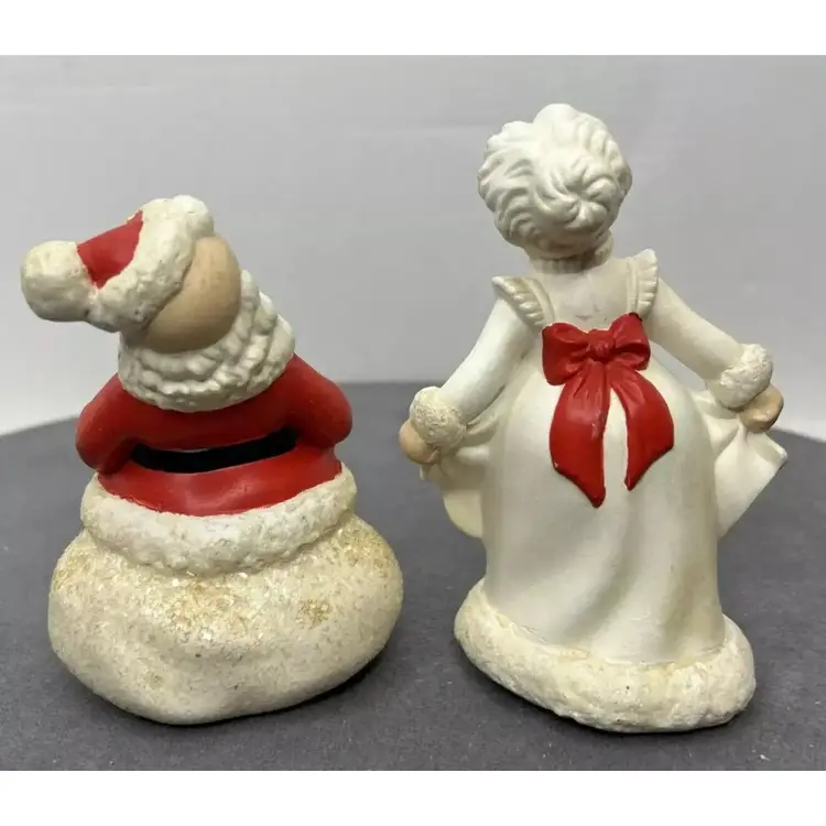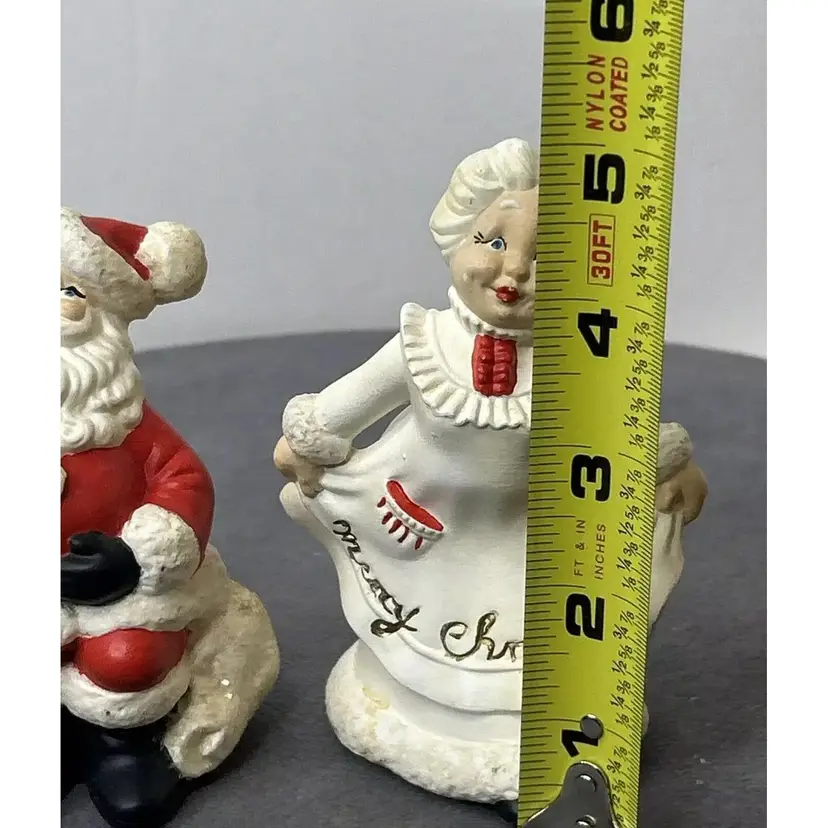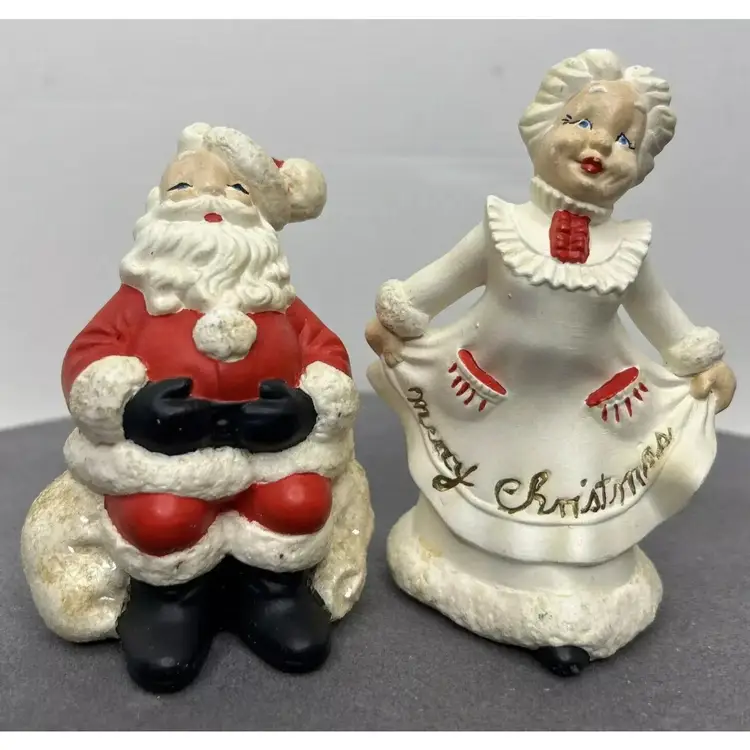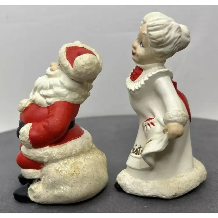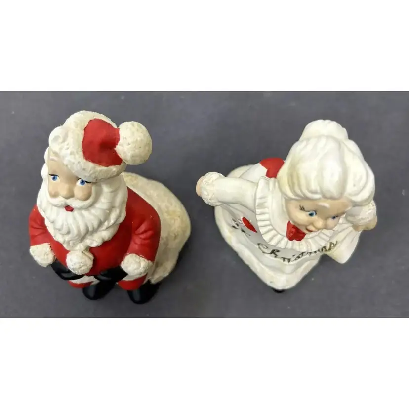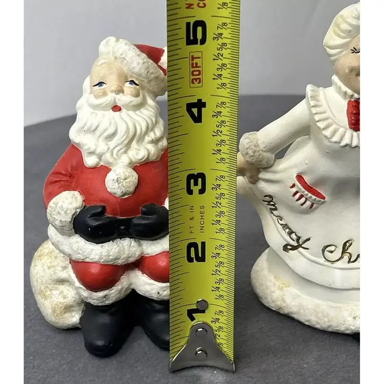 TG 1970's Atlantic Mold Santa & Mrs. Claus Christmas Ceramic Figurines Santa Claus figurine measures 4.75" inches tall and Mrs. Claus measures 5" inches tall. Add a festive touch to your Christmas décor with this vintage ceramic figurine set from Atlantic Mold. The hand-painted figurines feature Santa and Mrs. Claus in a charming 1970s style. Crafted from high-quality ceramic, these figurines are perfect for collectors or as a thoughtful holiday gift. The multicolor design and intricate details make them a standout addition to any Christmas décor. Vintage Christmas Santa & Mrs. Claus Ceramic 5” Figurines 1970’s Atlantic Mold, these are in great vintage pre-owned condition with NO chips, cracks or repairs. They do, however, show wear consistent with their vintage age. Please review all pictures for proper assessment of their great vintage pre-owned condition