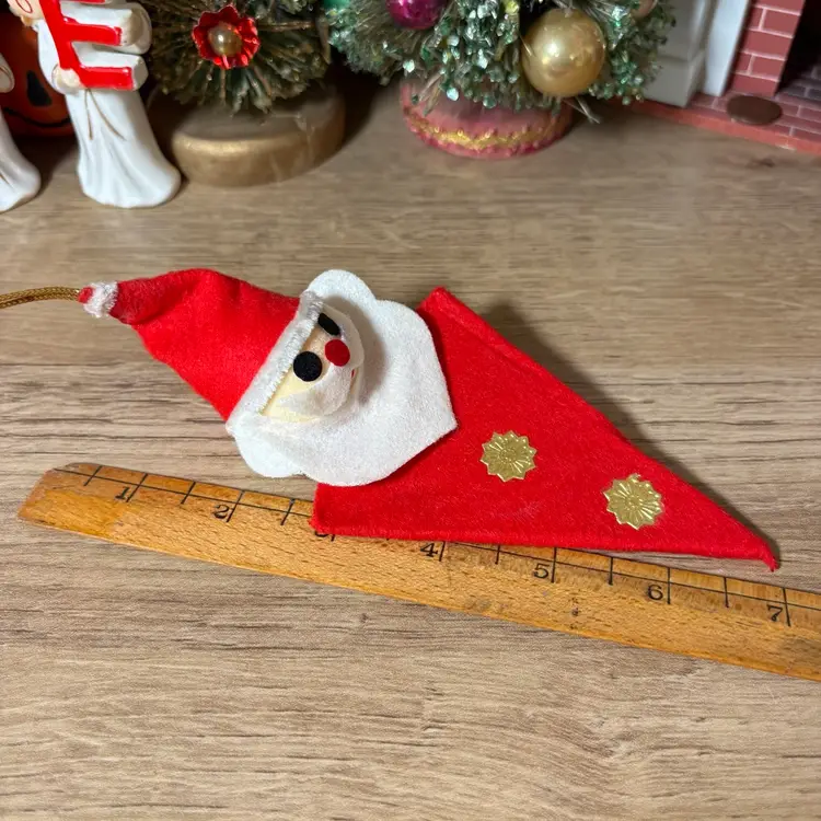 Vintage Christmas Santa Red Felt Triangle Ornament