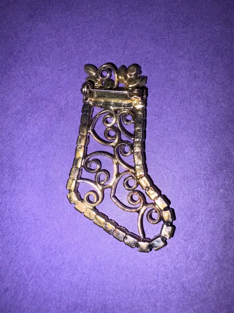 This is a beautiful Christmas stocking brooch. It is in excellent pre-owned condition.