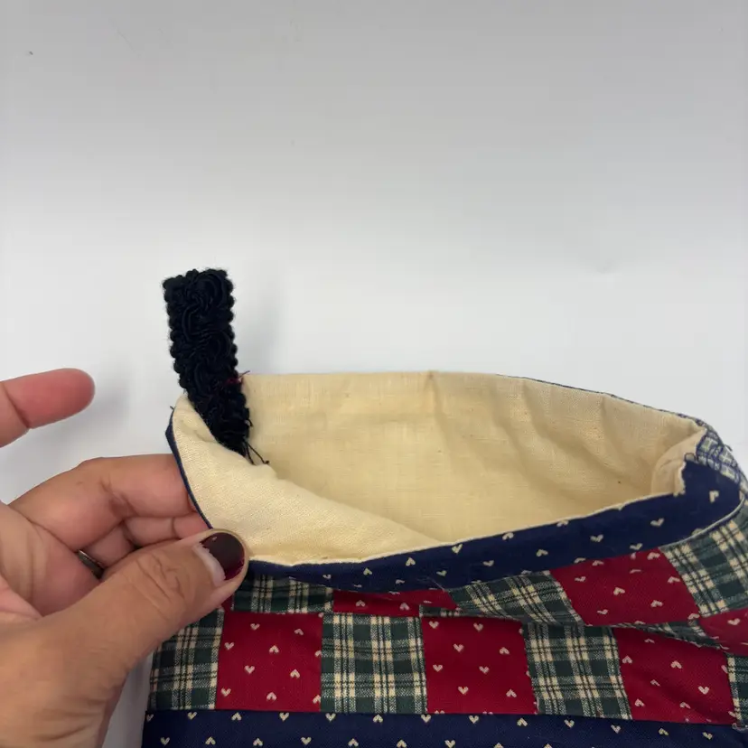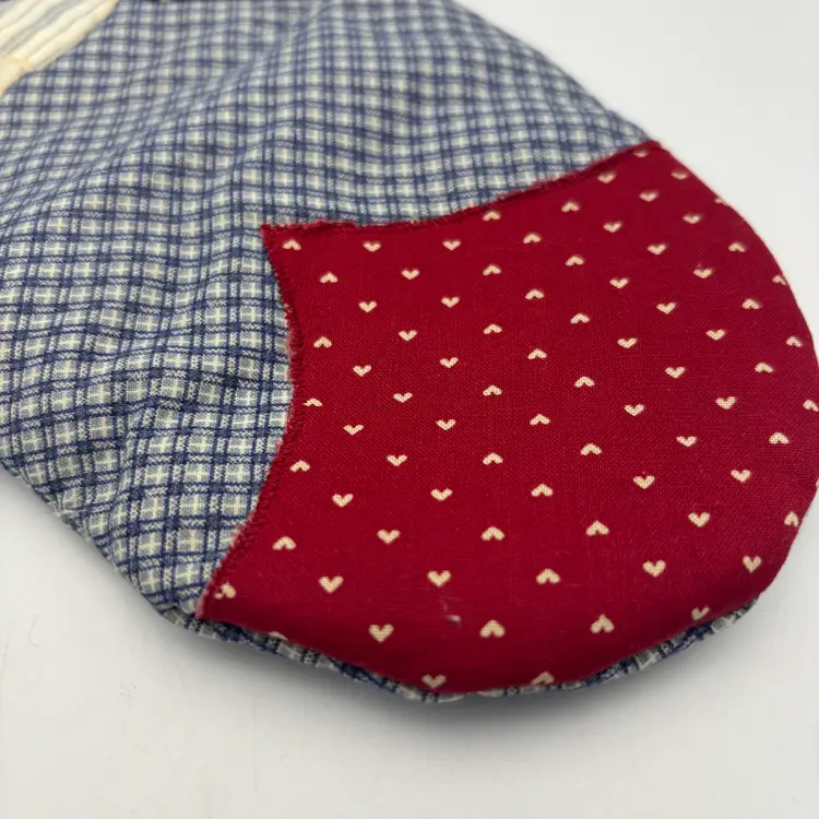 For sale is a Vintage Christmas Stocking Quilted Patchwork Doll Heart Applique