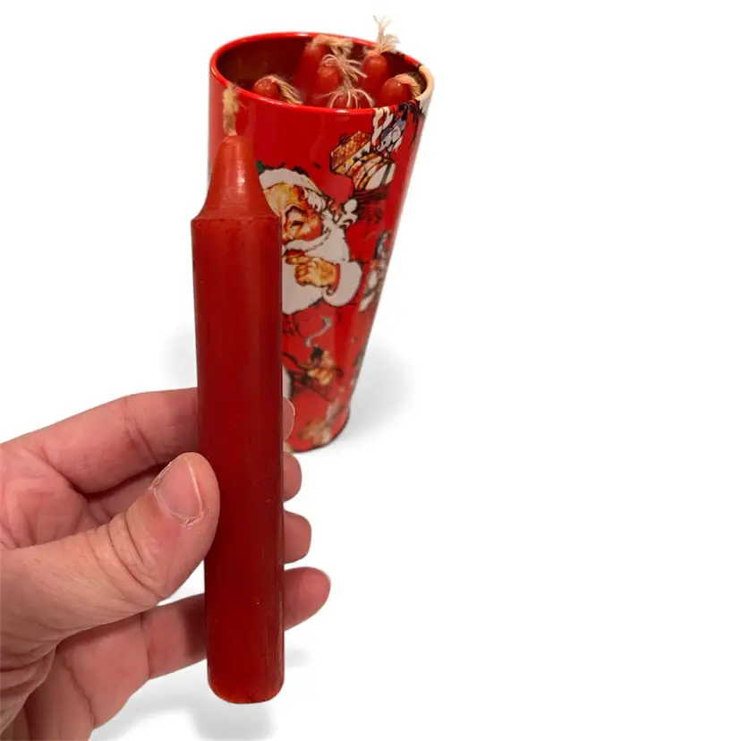 Tin measures 5.25x2.25” Candles measure 0.75” diameter In great condition!!