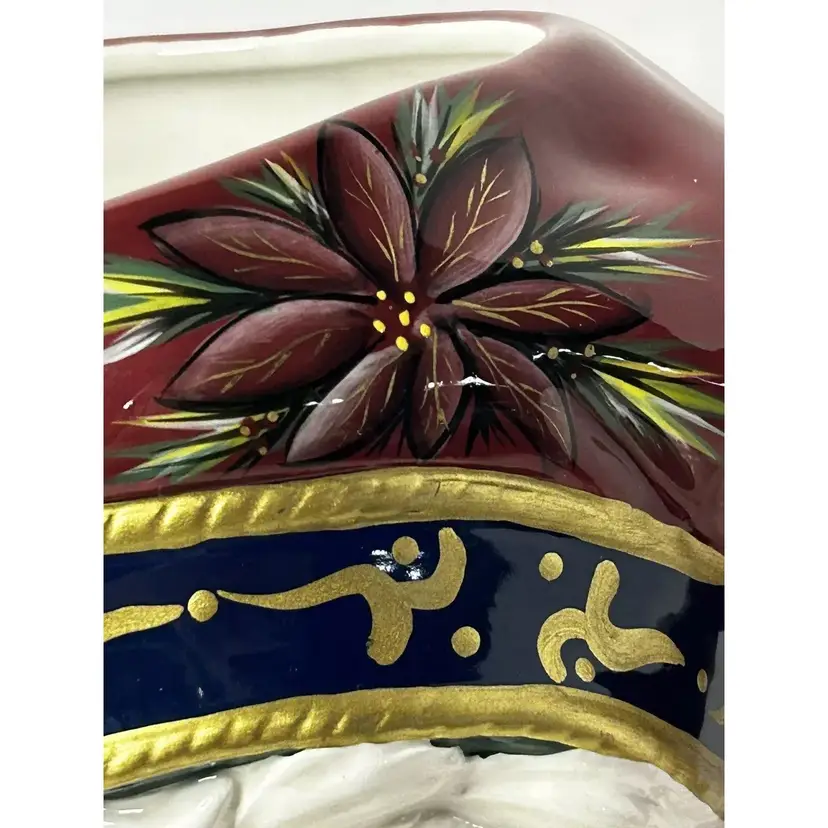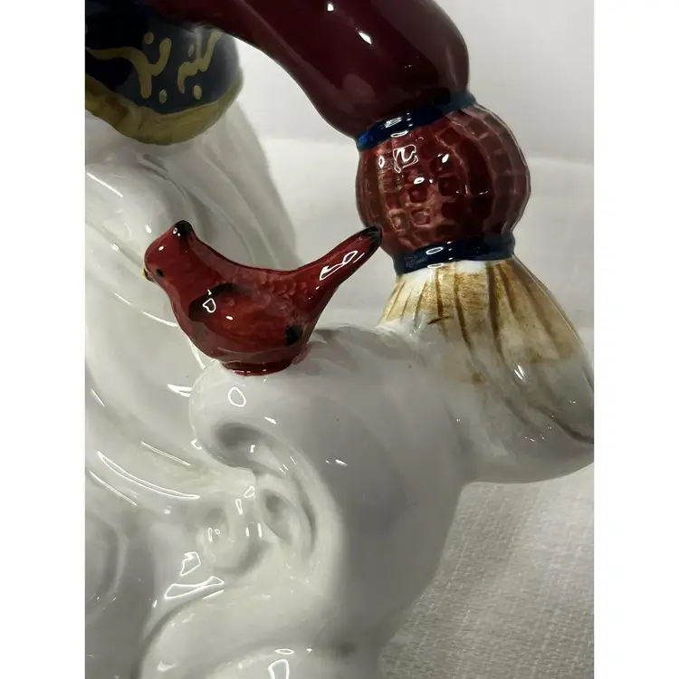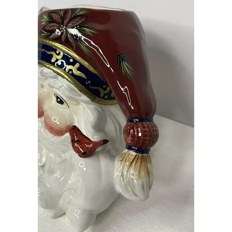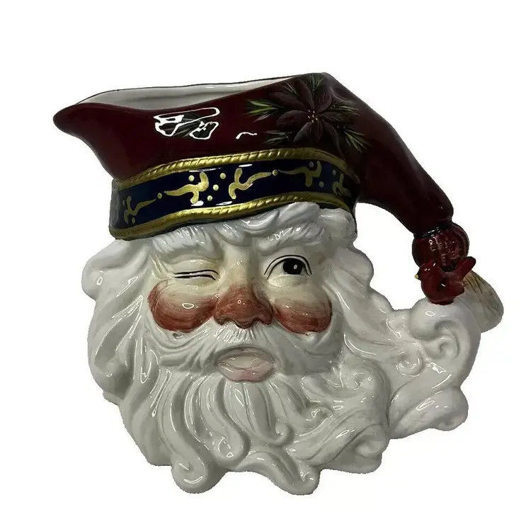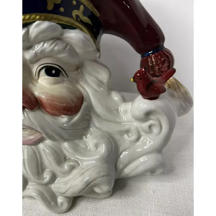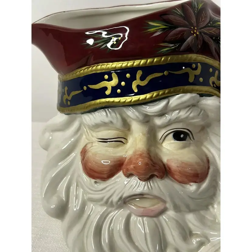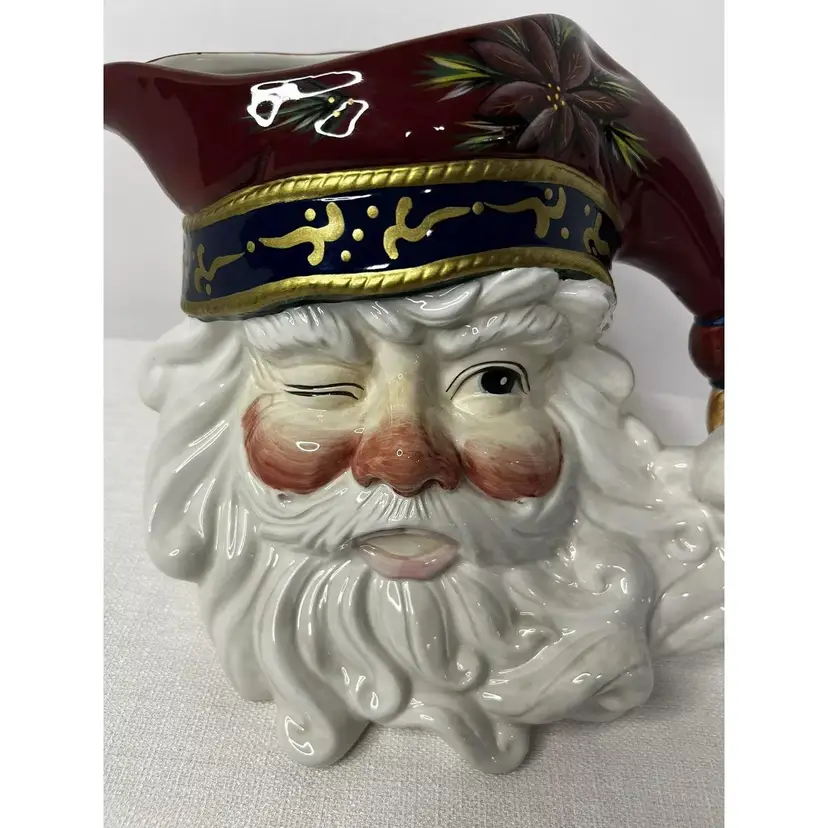 This Vintage Christmas Winking Santa Claus Hand Painted Pitcher has a sweet little Red Cardinal perched on his beard. This beautiful vintage Christmas pitcher has a wonderful glossy glaze throughout, and all the hand painted details really makes this beautiful pitcher stand out. This multicolor pitcher highlights a winking and smiling Santa Claus wearing his iconic deep red hat while showcasing his amazing white beard where a sweet little red cardinal rests. This amazing piece hails from the late 1990's and is a truly beautiful piece that you will be proud to display and use during the Christmas holidays season. This wonderful Vintage Christmas Winking Santa Claus Hand Painted Pitcher with Red Cardinal measures 8.5" inches tall, 10" inches wide and 7.5" deep. This Vintage Christmas Winking Santa Hand Painted Pitcher with Red Cardinal is in excellent vintage pre-owned condition, with NO chips, cracks or repairs. However, it does show some slight crazing which is consistent with its vintage age. Please review all pictures for proper assessment of its vintage preowned condition.