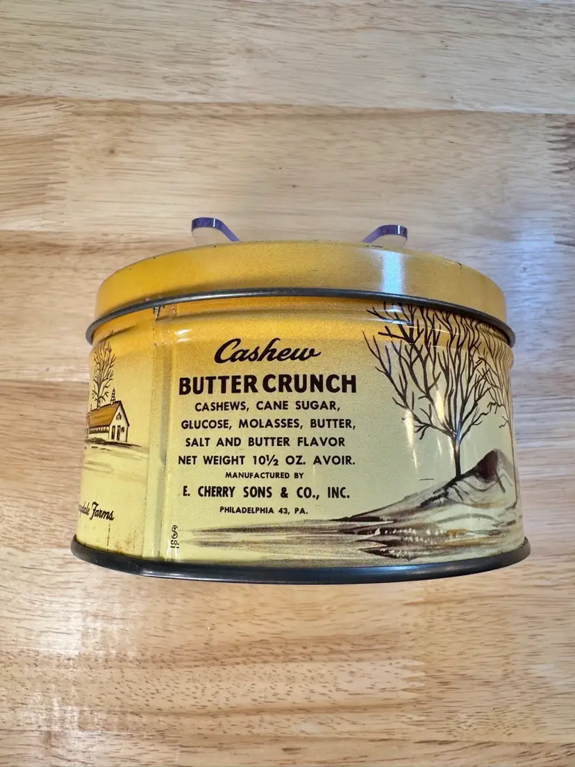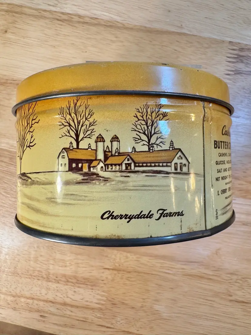 Good vintage condition. Gorgeous butterscotch color. Image depicts Cherry Dale Farms. Once held cashew butter crunch 10 1/2 oz capacity. E Cherry Sons & Co. Philadelphia PA. Clean with wear signs Approx 3”H 5” D