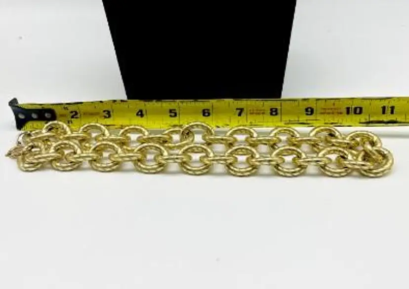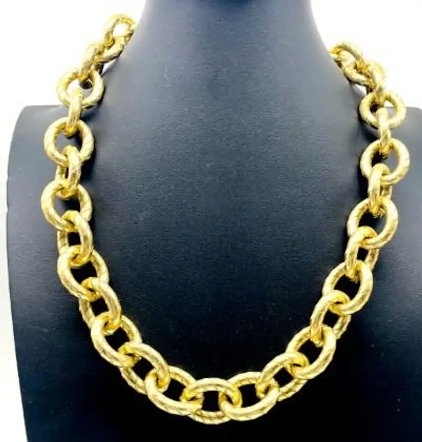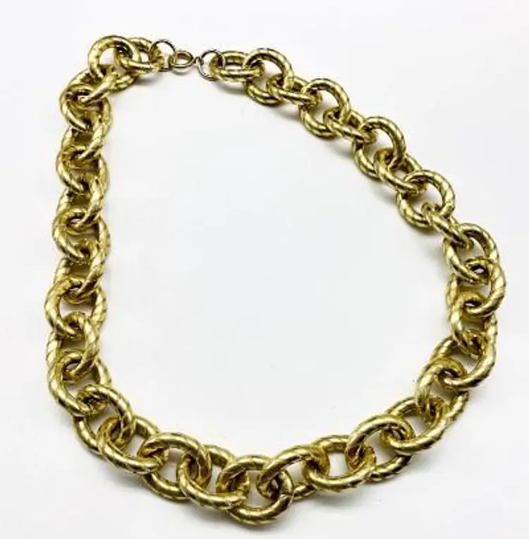 Make a bold statement with this vintage chunky gold tone chain necklace. Measuring 22 inches, this piece is perfect for adding a touch of glamour to any outfit.