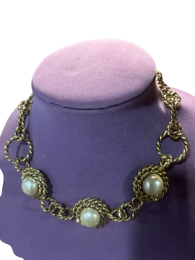 Beautiful and stylish vintage pearl necklace measures 16”. May show some signs of wear.
