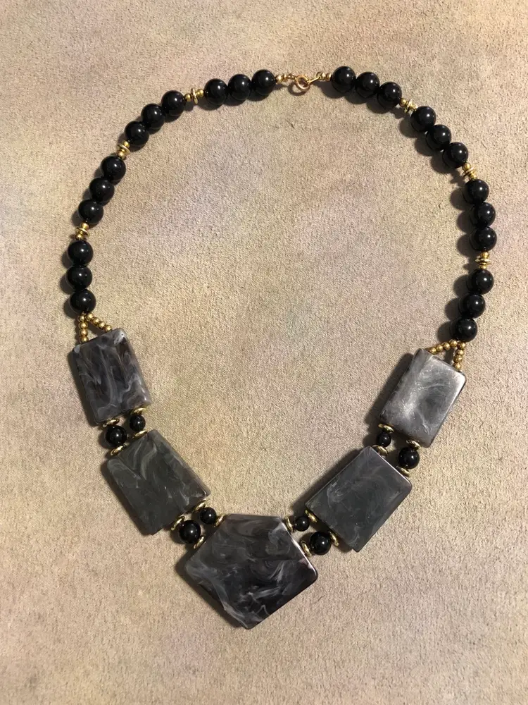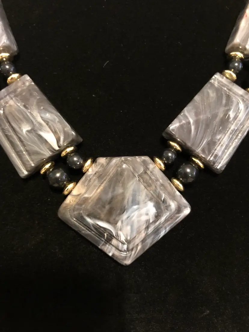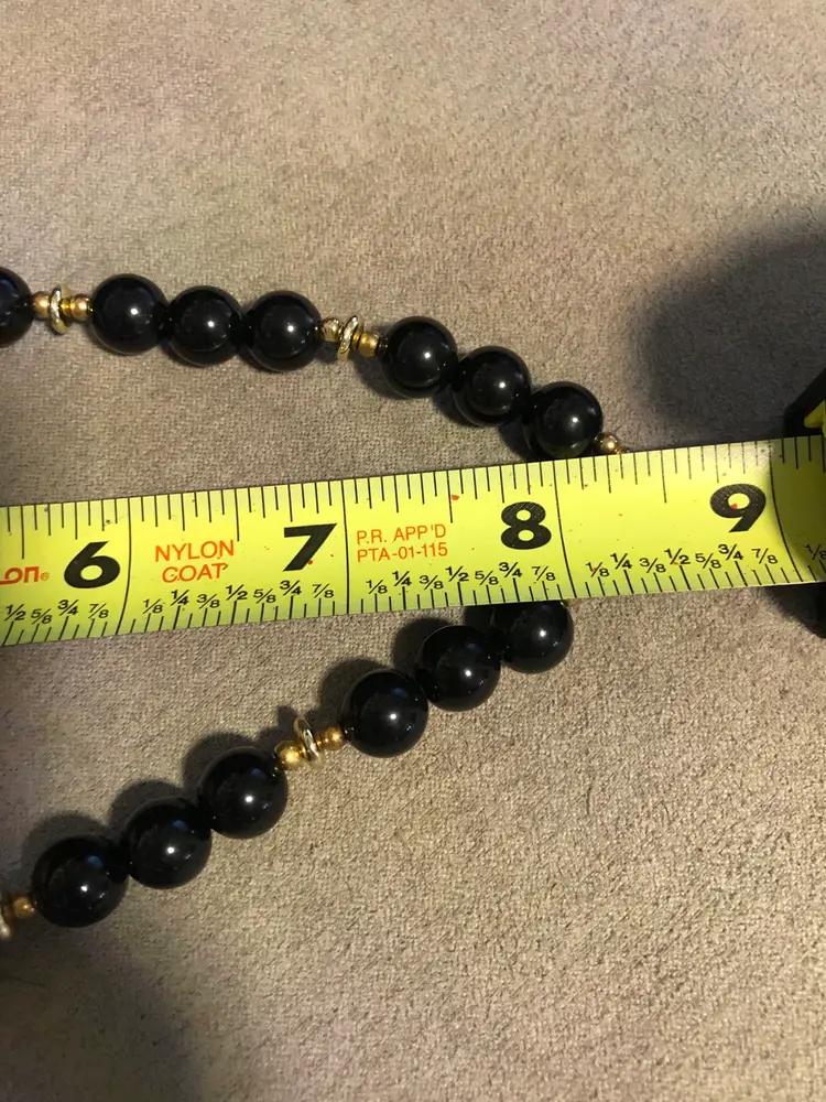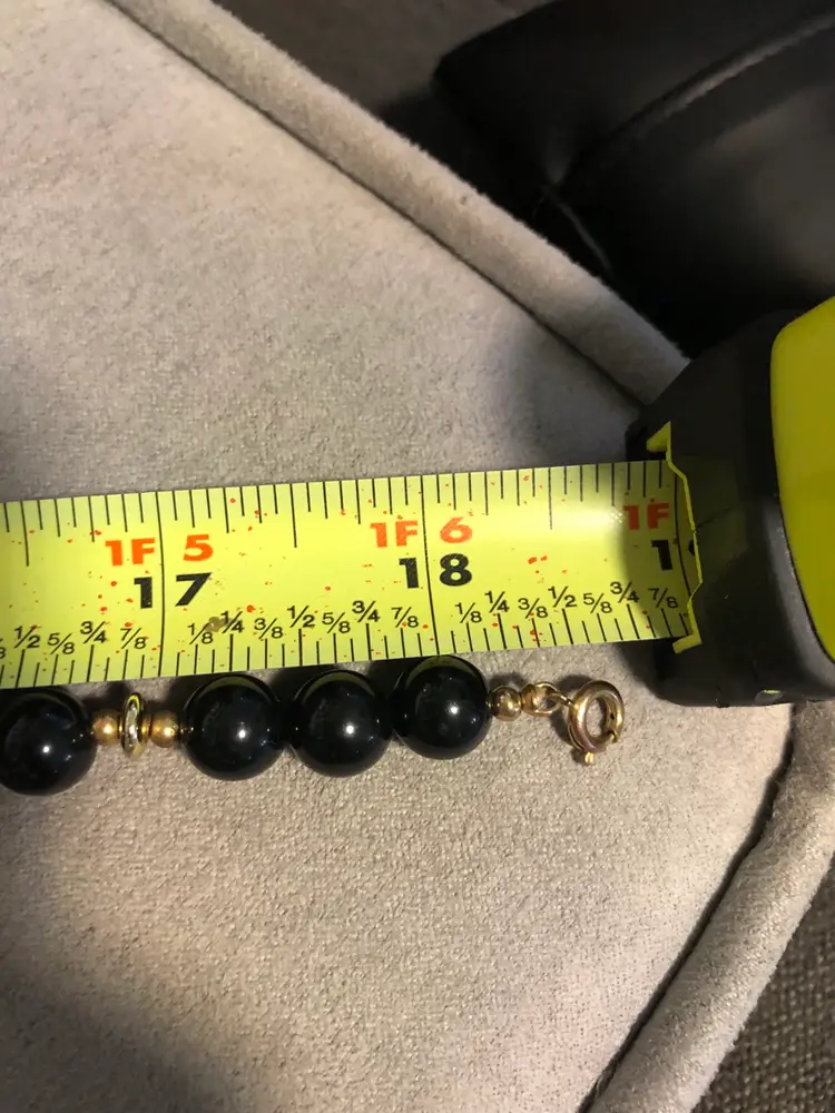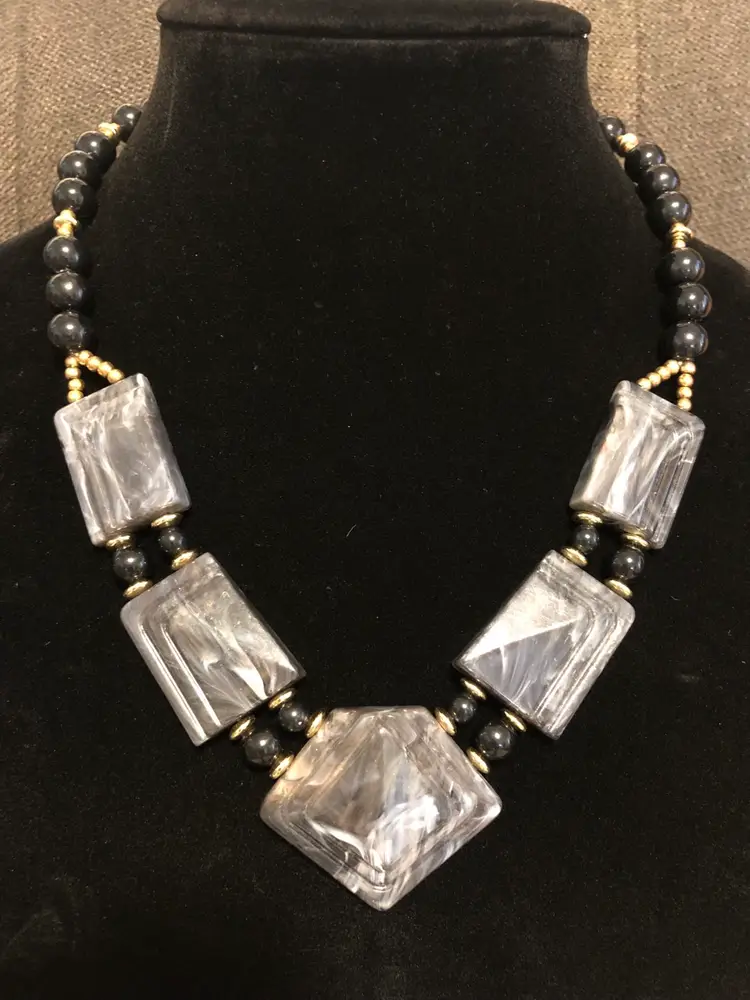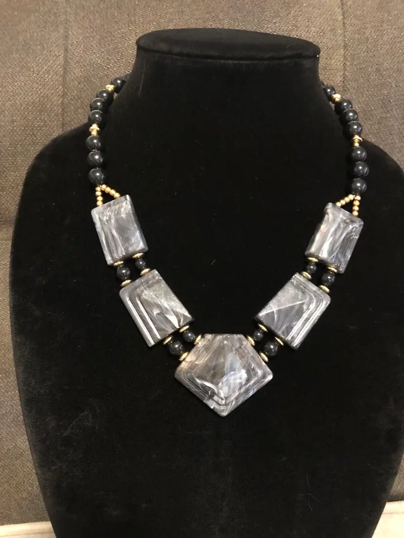 Unsure of what this is made of Really pretty Does not come with the jewelry stands Almost 19 inches in length unclasped