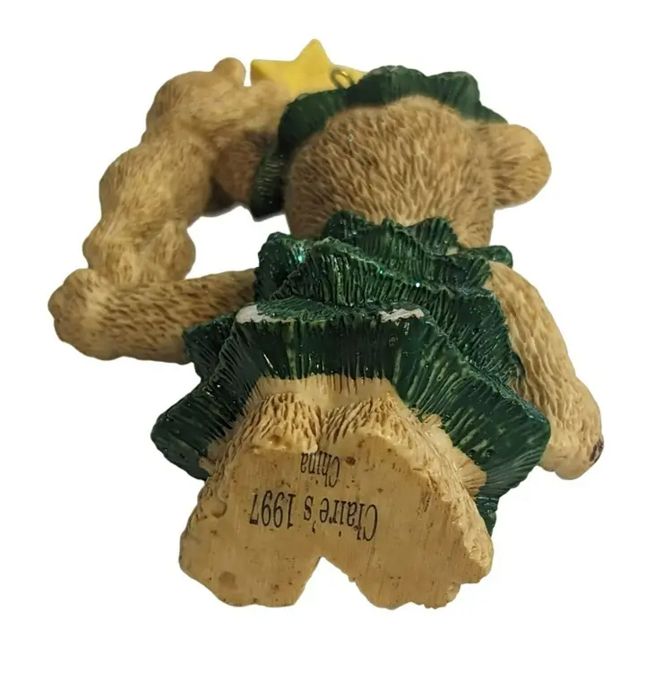 Vintage Claire's 1997 Christmas Tree Teddy Bear 3.75” Ornament Figurine. Condition is preowned. Does have some paint wear in the back. Can be used as an ornament or stand alone. (FC04)202311015