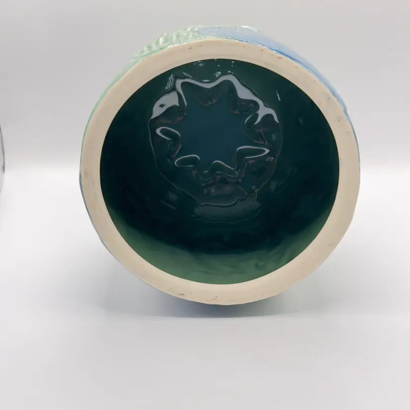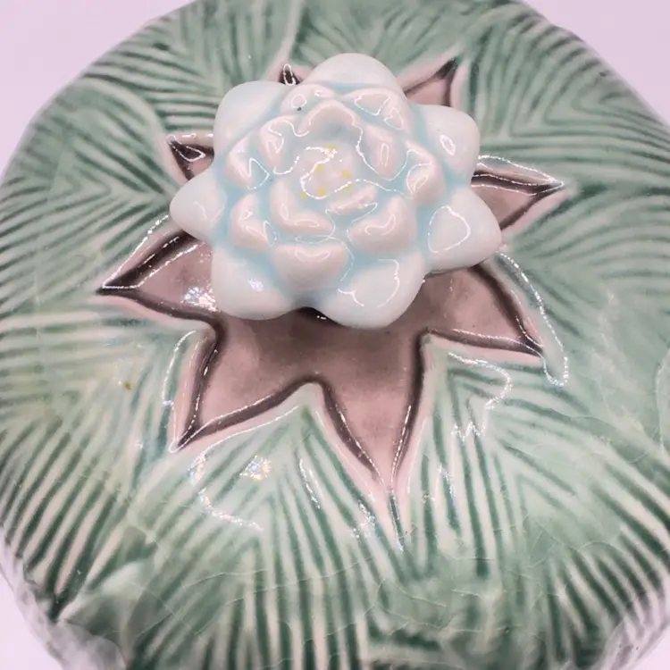 Add a touch of elegance to your table with this vintage cloche, cheese, butter dish featuring a beautiful lily pad lotus flower design. Handcrafted with intricate details, it's perfect for serving butter or as a charming decorative piece. In excellent condition with no chips or cracks. Missing bottom plate. Measures 6x8 inches. Weighs 3lbs.