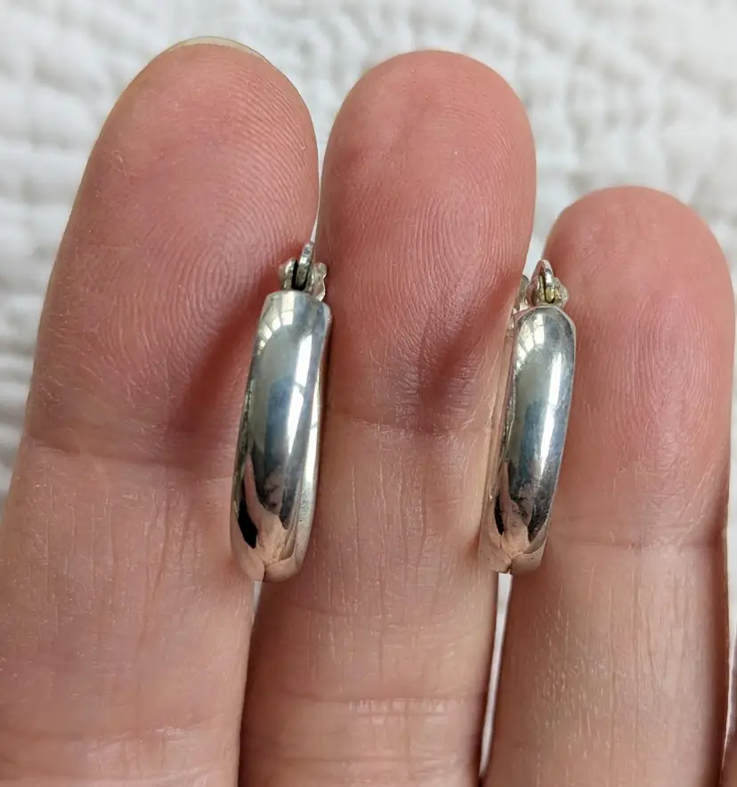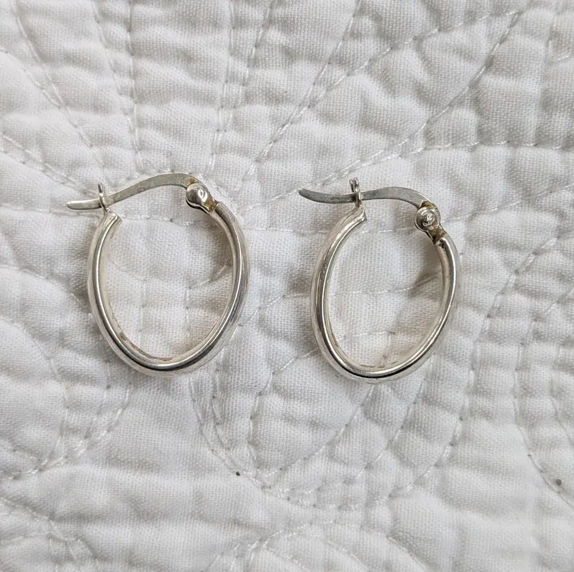 3/4" long. Pierced. Unmarked but acid tests as positive for sterling silver.