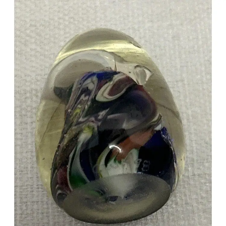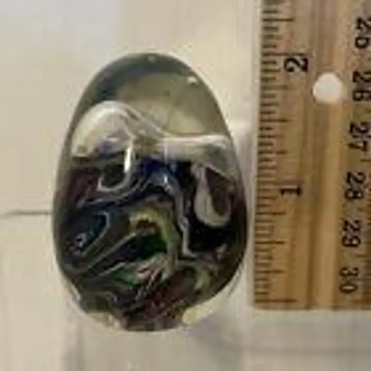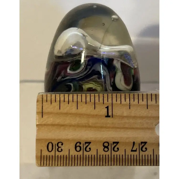 Vintage Claude Kurtz Hand Blown Art Glass Multicolor Swirls Egg Paperweight~ Signed CWK 98’measures 2" inches tall and 1.5" inches wide.