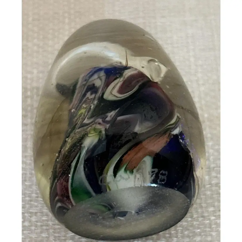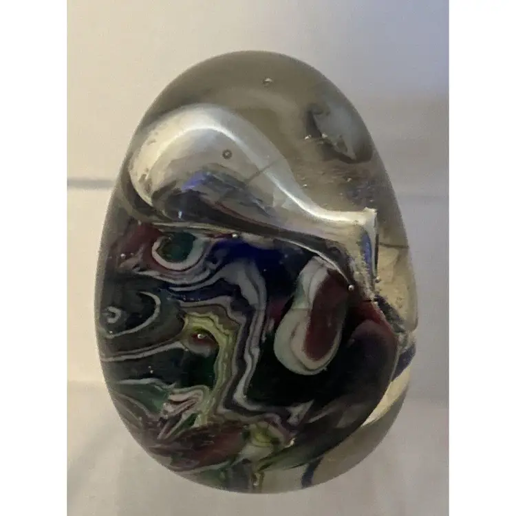 Vintage Claude Kurtz Hand Blown Art Glass Multicolor Swirls Egg Paperweight~ Signed CWK 98’ is in great vintage pre-owned condition. It has no chips or cracks. Please review all pictures for proper assessment of its vintage pre-owned condition.