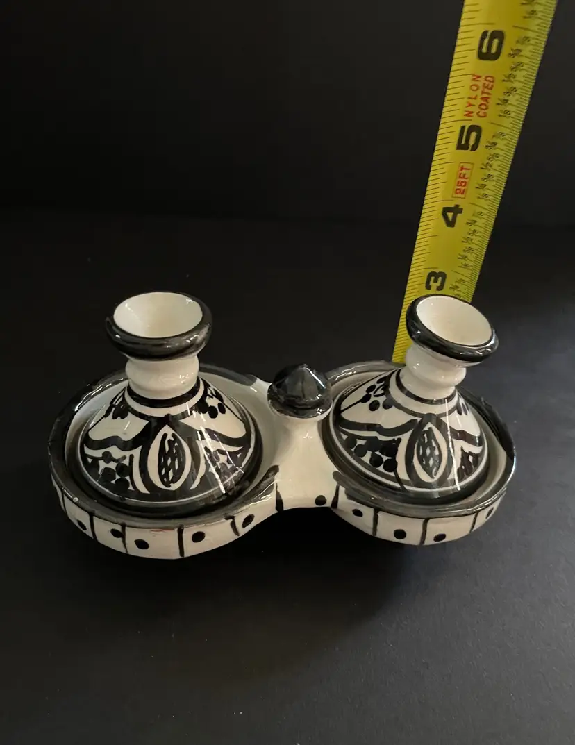 5" wide x 3" tall. The two little dishes of the tagines are 3" diameter each.