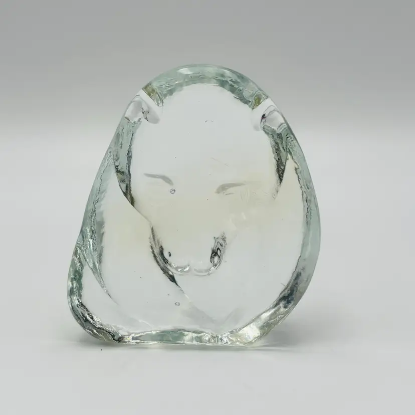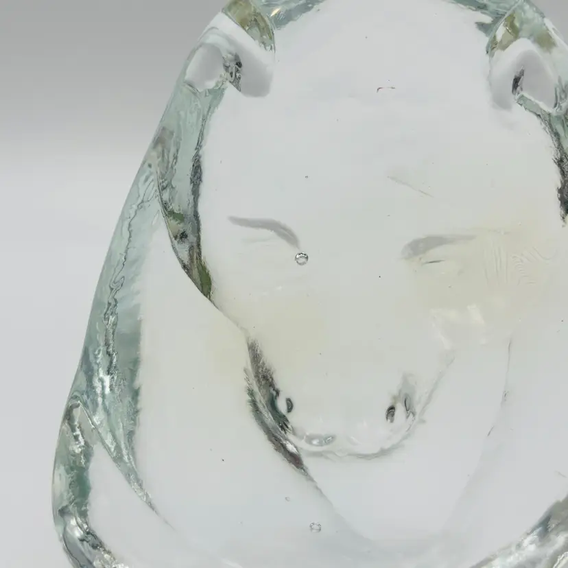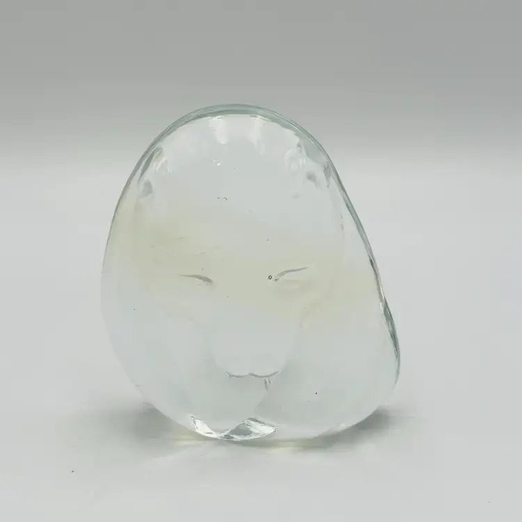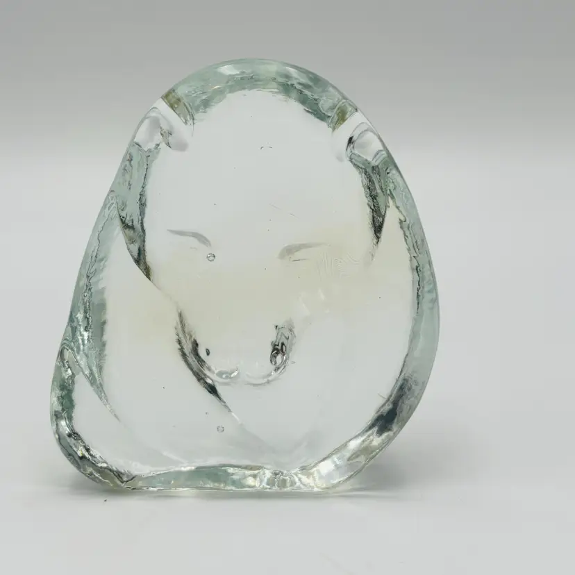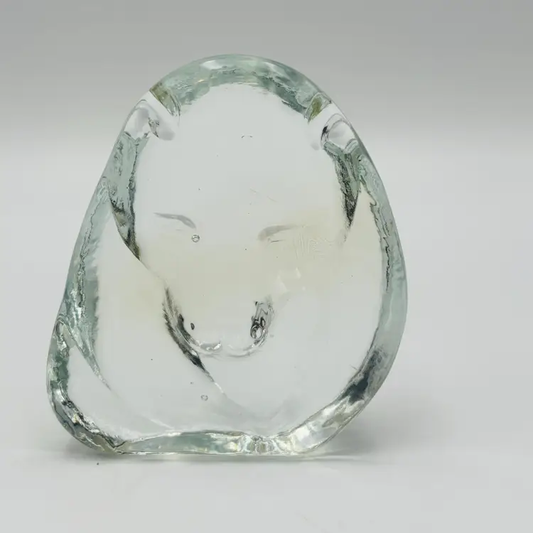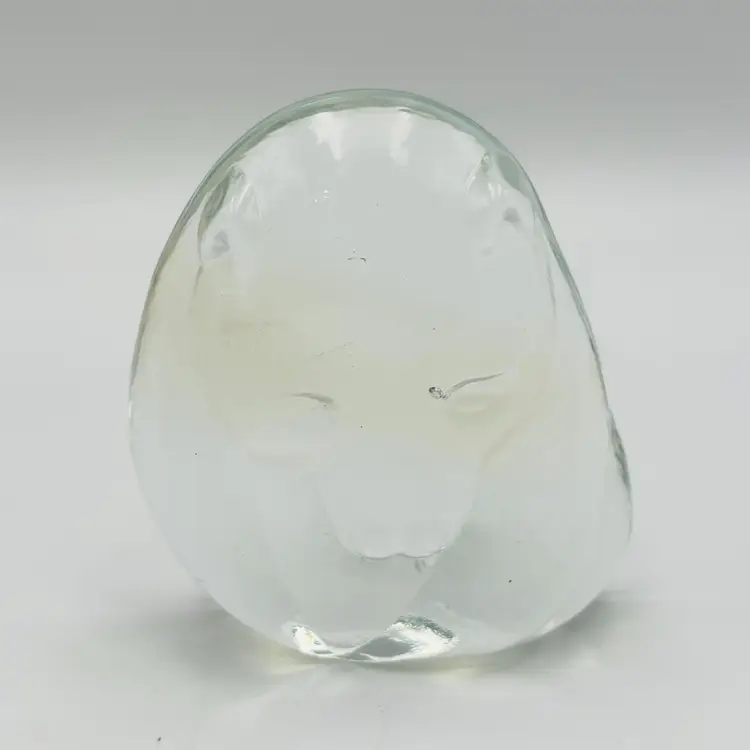 For sale is a Vintage Clear Art Glass Bear Figurine Paperweight Flat Back