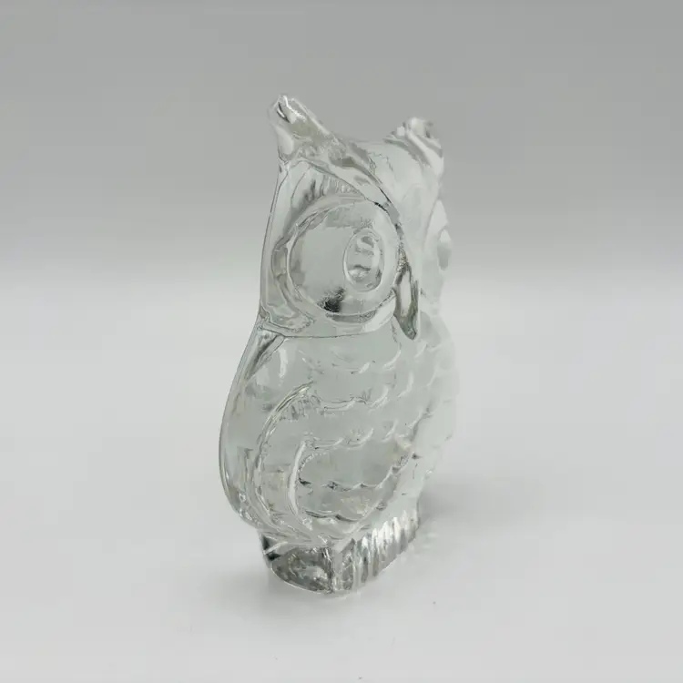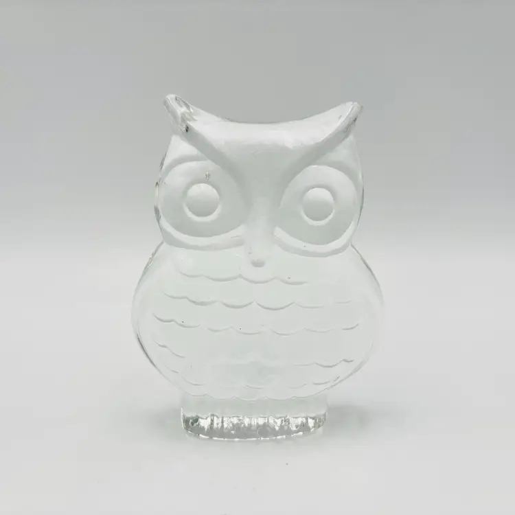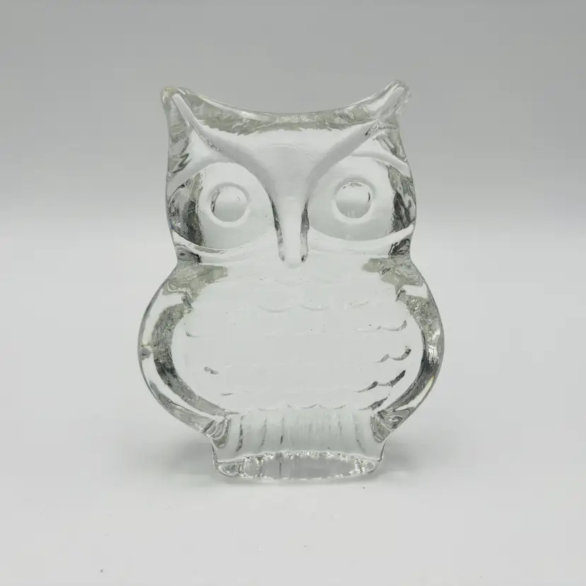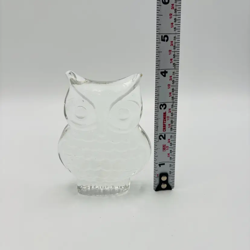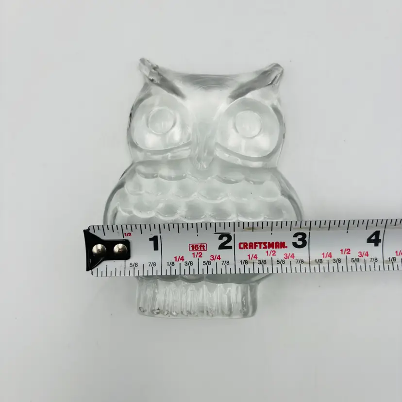 For sale is a VIntage Clear Art Glass Owl Figurine Paperweight 4" Flat Back