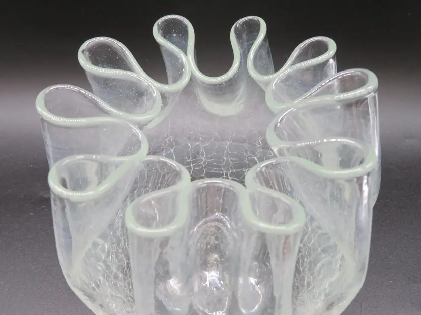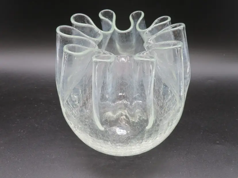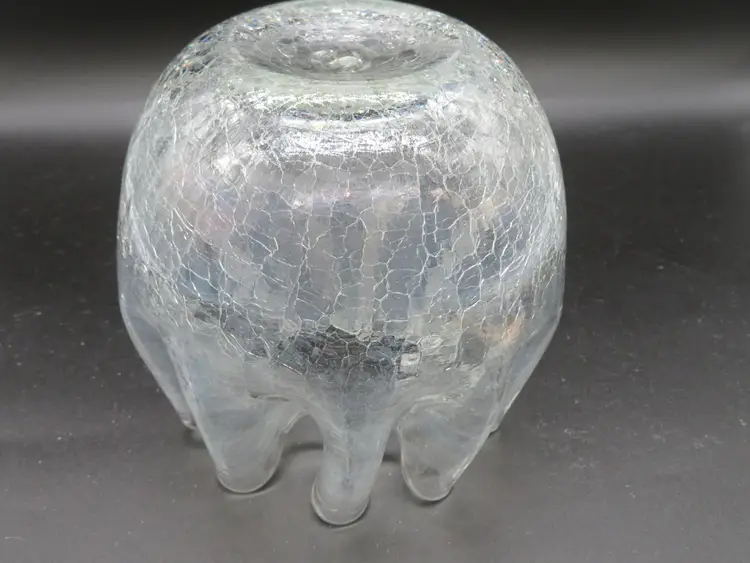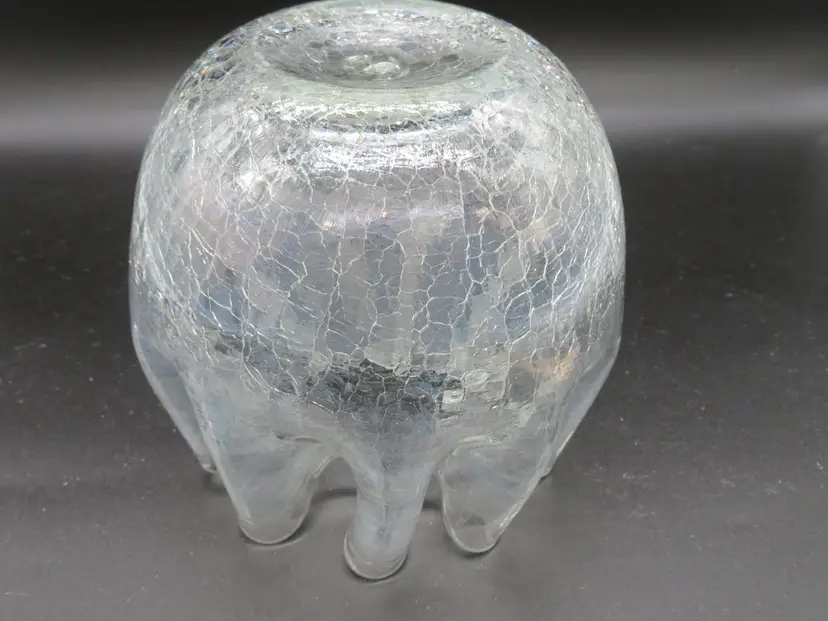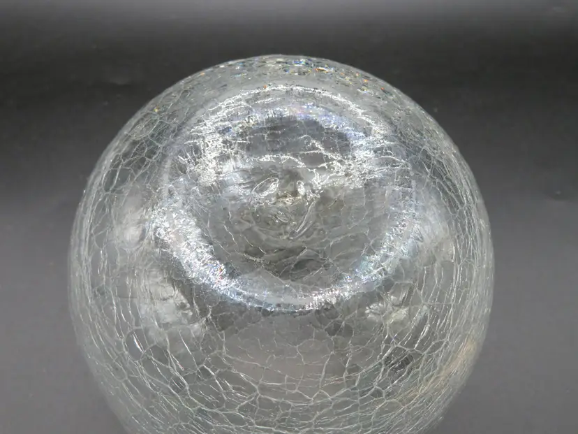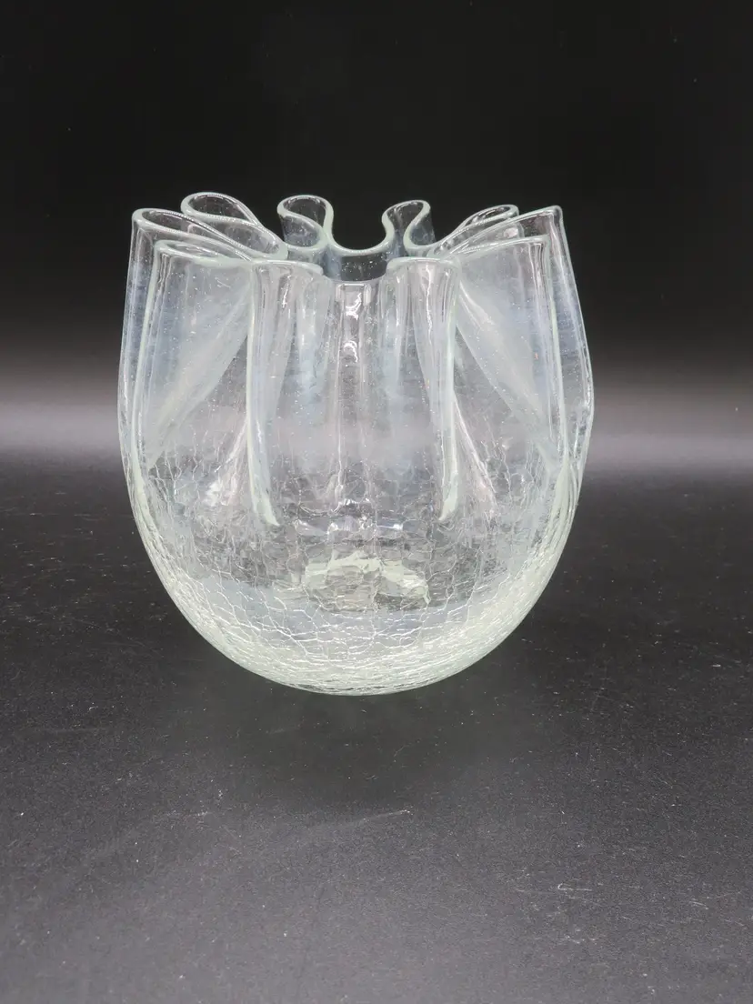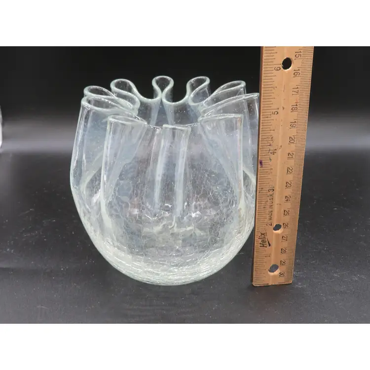 Item Description: For your consideration is a beautiful vintage clear crackle glass rose bowl vase. It has a pinched rim. This piece features an elegant, flowing design with a textured base, perfect for adding a touch of mid-century charm to any room. It's in excellent condition with no chips or cracks. Please review all photos for condition. Dimensions: Please refer to photos for size details. It is 5.25" tall with a 5" dia. Shipping: I ship daily, all items are securely packaged in foam & bubble wrap to protect your investment. Thank you for viewing my item, please check out my other listings!