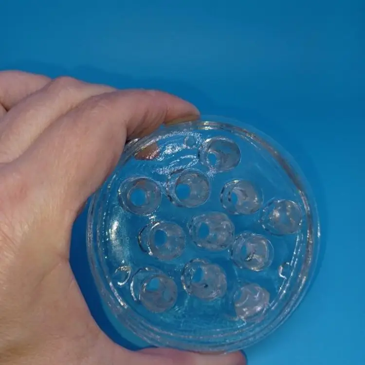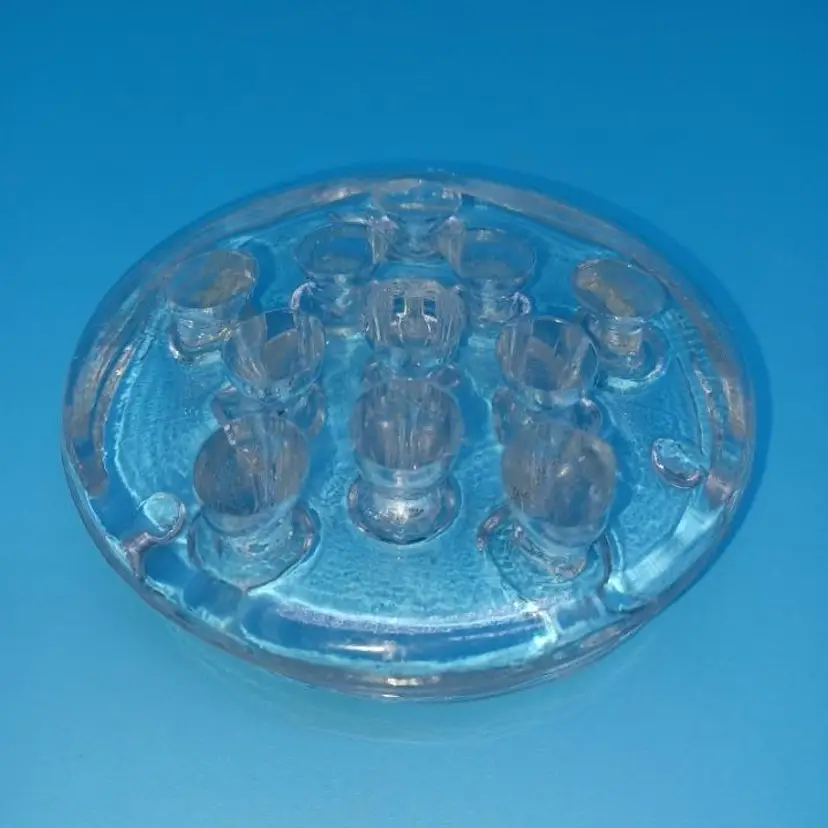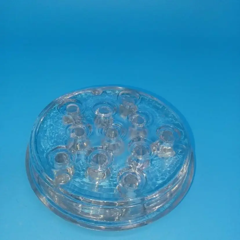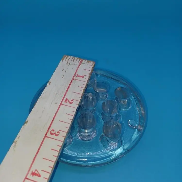 Vintage clear glass 11 whole flower frog this vintage flower frog is in good condition with no obvious chip's cracks wear. Measures approximately 3 1/2 inches wide from point please see all pictures as they are the best description of this vintage item all items from a smoke free home with pets. Experienced glass shipper