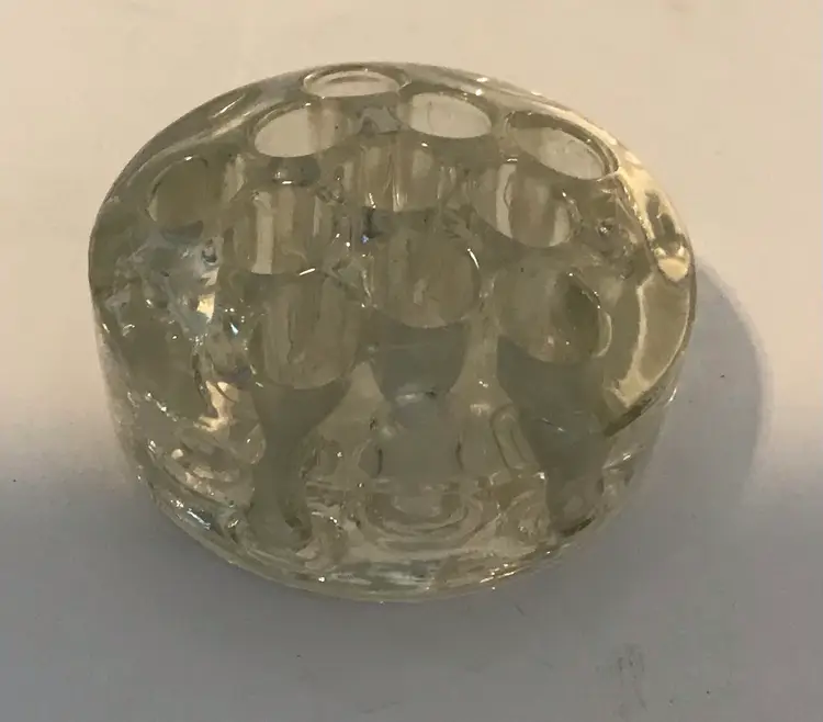 vintage charm to your flower arrangements with this clear glass flower frog. This 3-inch decorative piece features 11 holes perfect for securing stems of your favorite blooms. Its unbranded design allows it to blend seamlessly with any decor style, making it a versatile addition to your collection of decorative collectibles. Crafted from high-quality glass and has many other repurposed uses as well