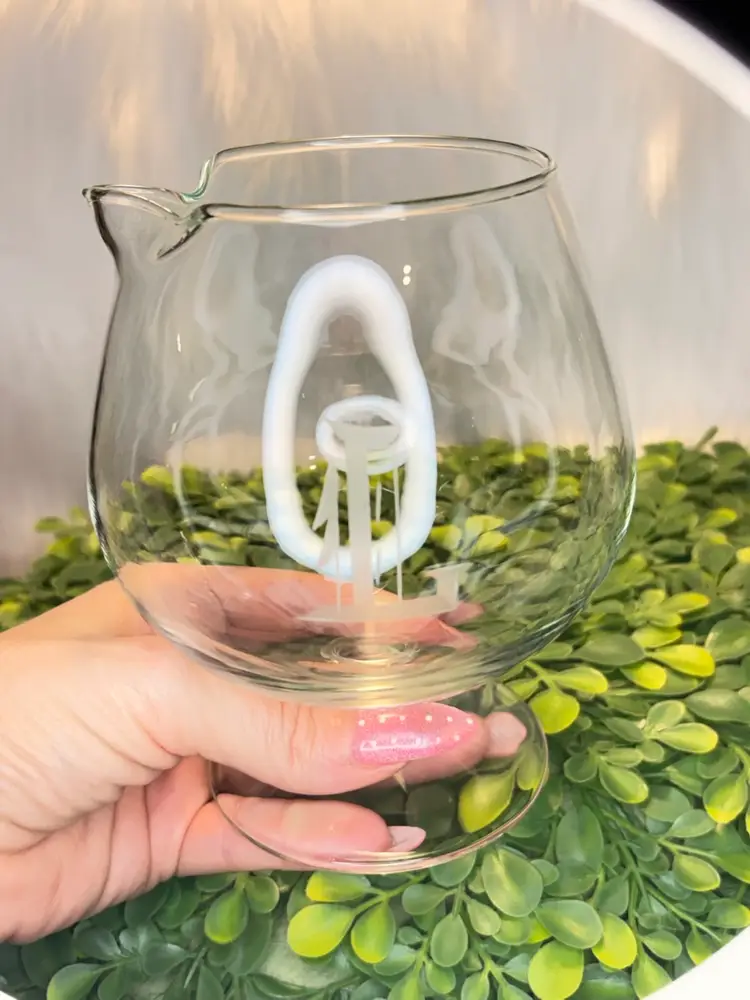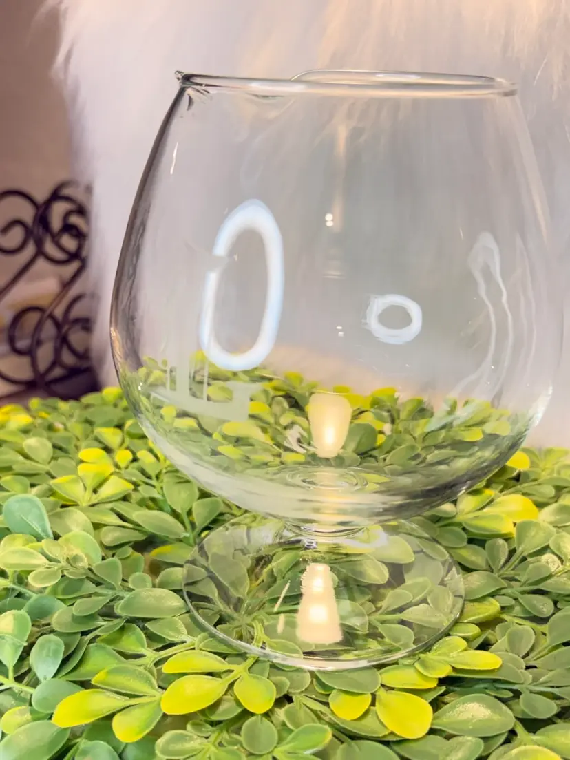 Vintage Clear Glass Brandy Snifter with pour spout Hayward with letter “L” etched design. Excellent condition.