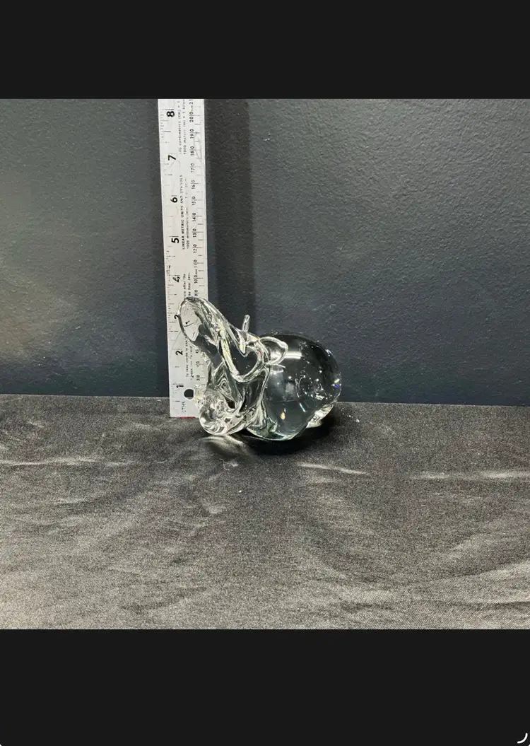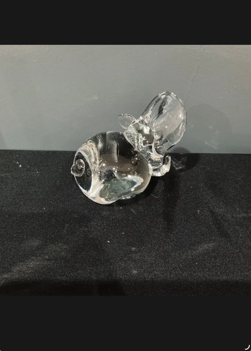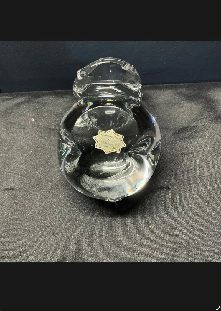 This mid-century modern Vintage Clear Glass Hippo Figurine from Taiwan adds a touch of whimsy to any collection. Hand-blown and finished with a glossy clear glass, this paperweight showcases the artistry of Holiday Imports. Its unique design and vintage charm make it a standout piece for collectors of decorative glassware.