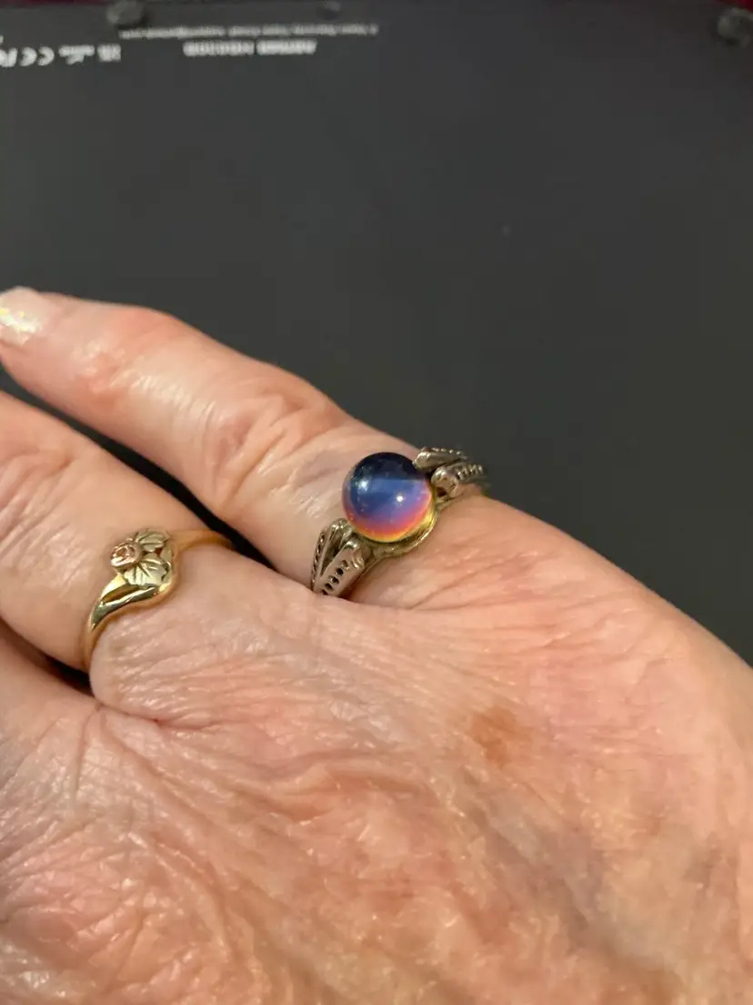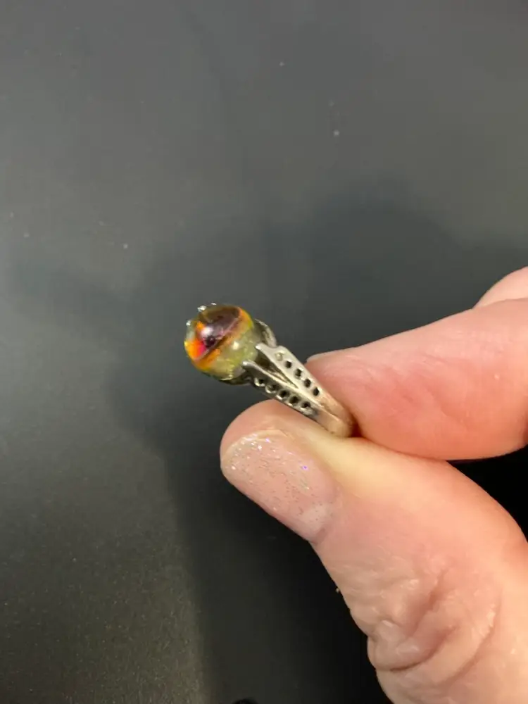 Unique vintage glass globe ring size 6.5. Reflects colors that are nearby. In very good vintage condition. Please see photos as they are part of the description. Thank you for looking!