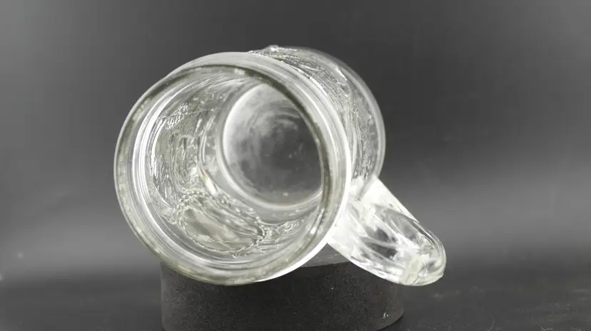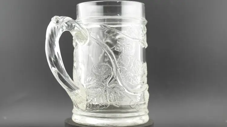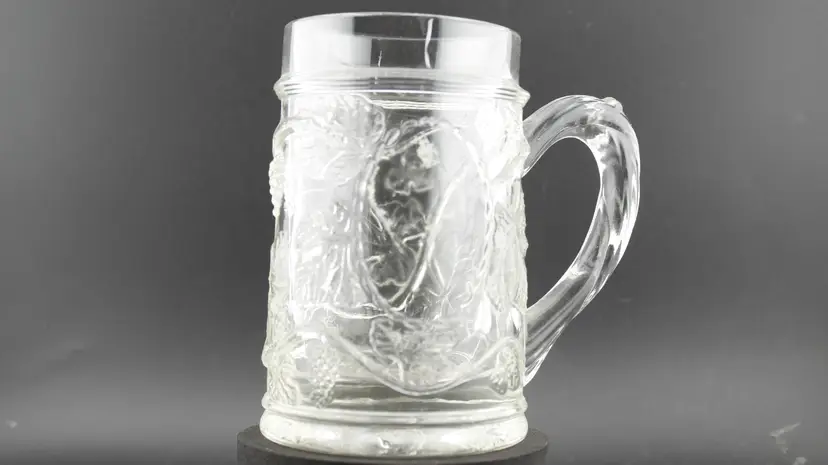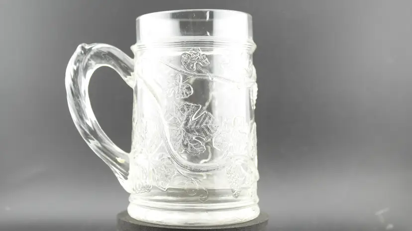 Ornate glass mug. Beautiful pattern. No chips or cracks. 5" tall 3" wide opening at top.