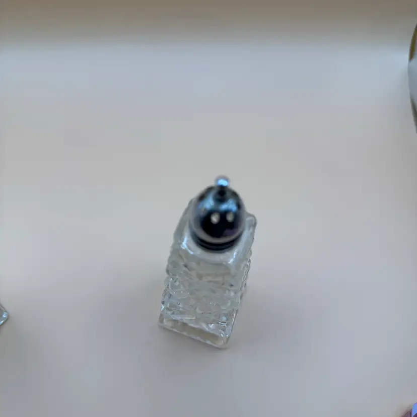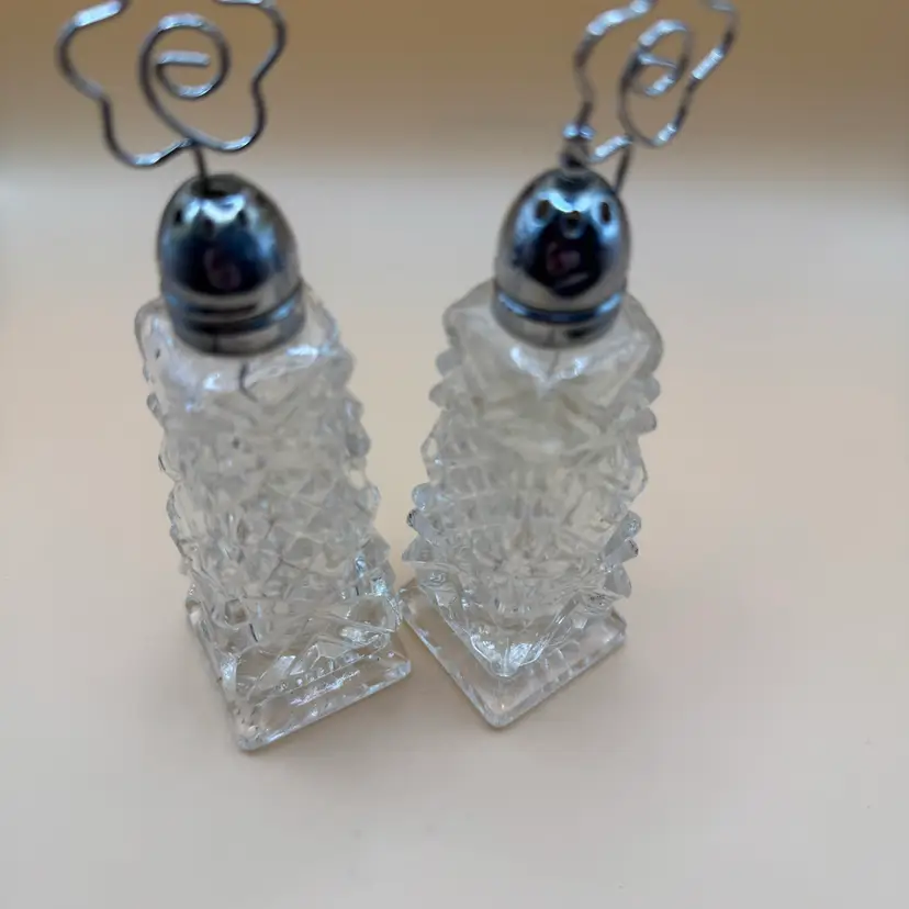 Vintage Clear Glass S&P Shakers, comes with wire photo holders