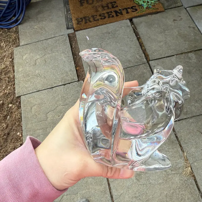 Vintage Clear Glass Squirrel Nut Candy Dish Trinket Catch All Sasaki Bar Japan