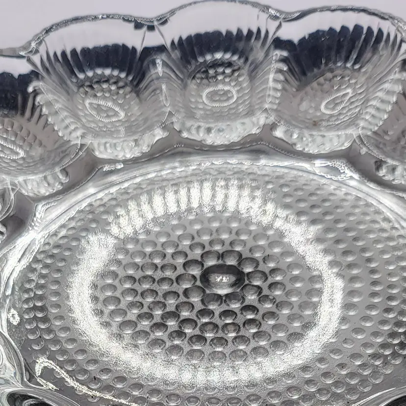 Charming vintage serving plate featuring a classic hobnail pattern. Perfect for adding a touch of elegance to your dining table or display! With Original Box (not perfect box) Holds 15 eggs