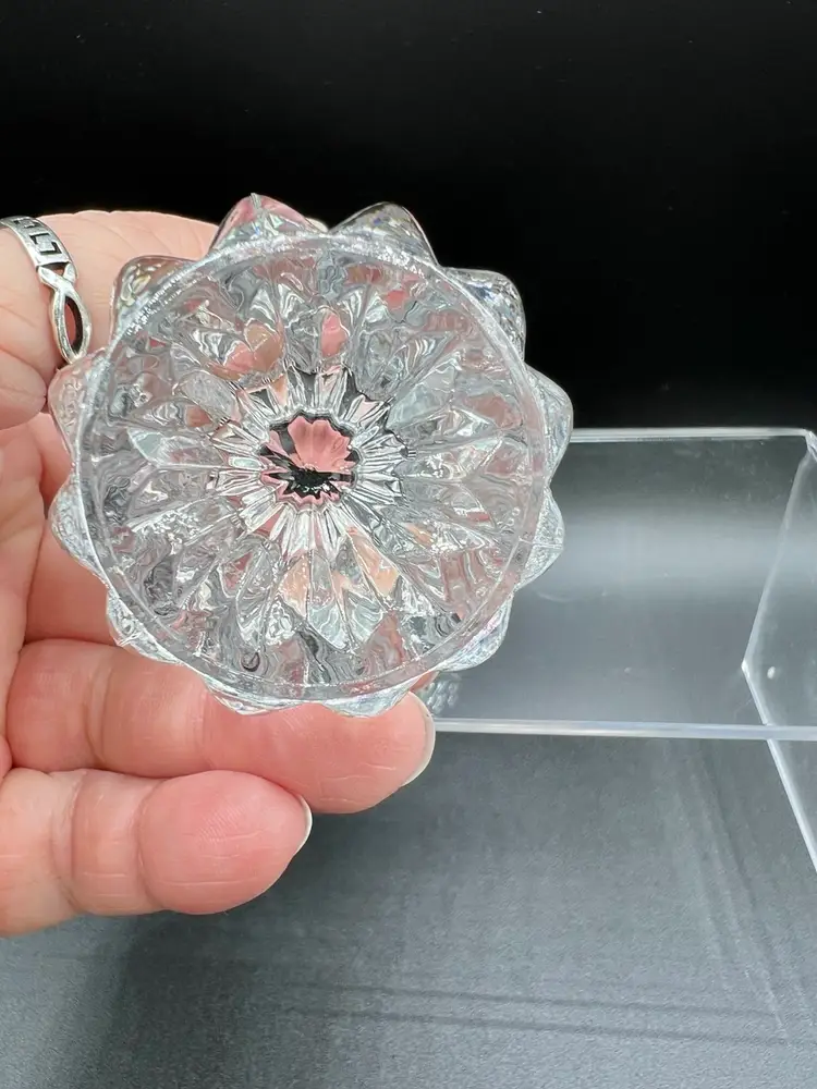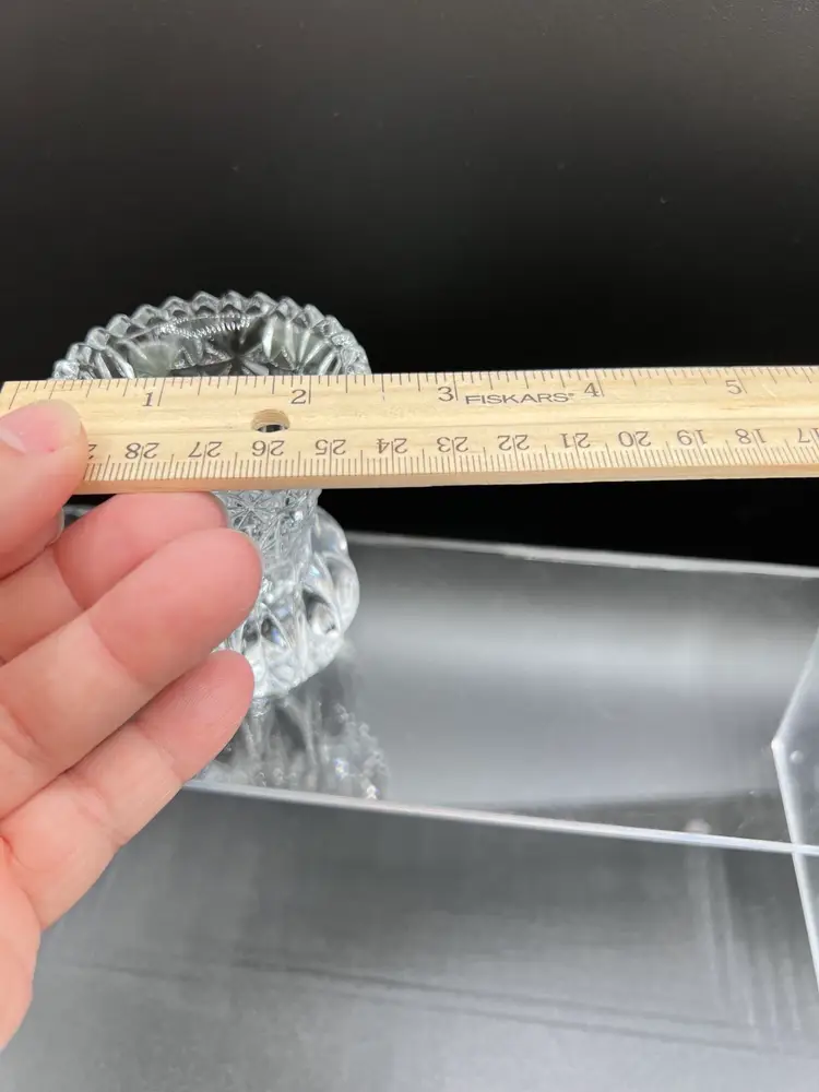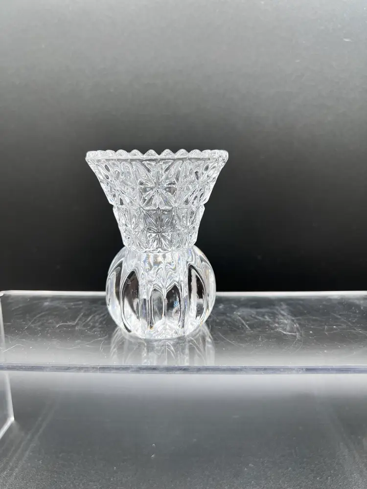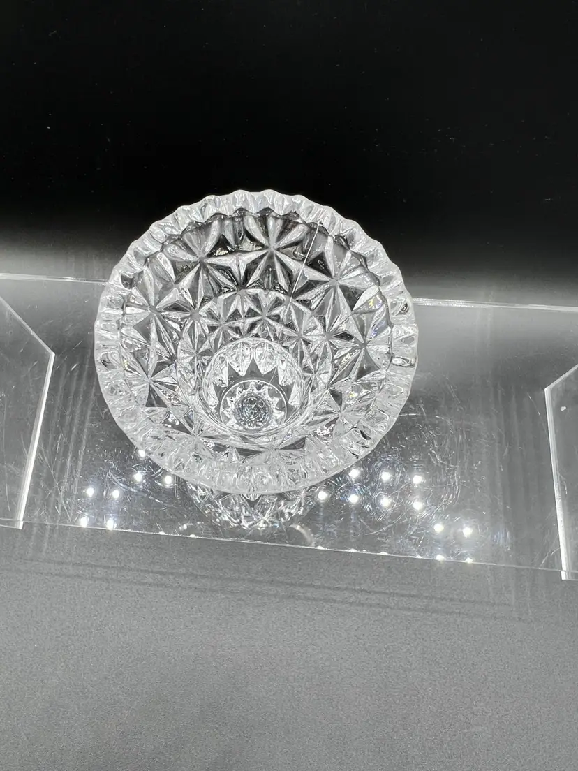 Beautiful vintage clear cut/pressed glass toothpick holder In excellent condition, no chips or cracks 3" tall x 2 1/2" in diameter
