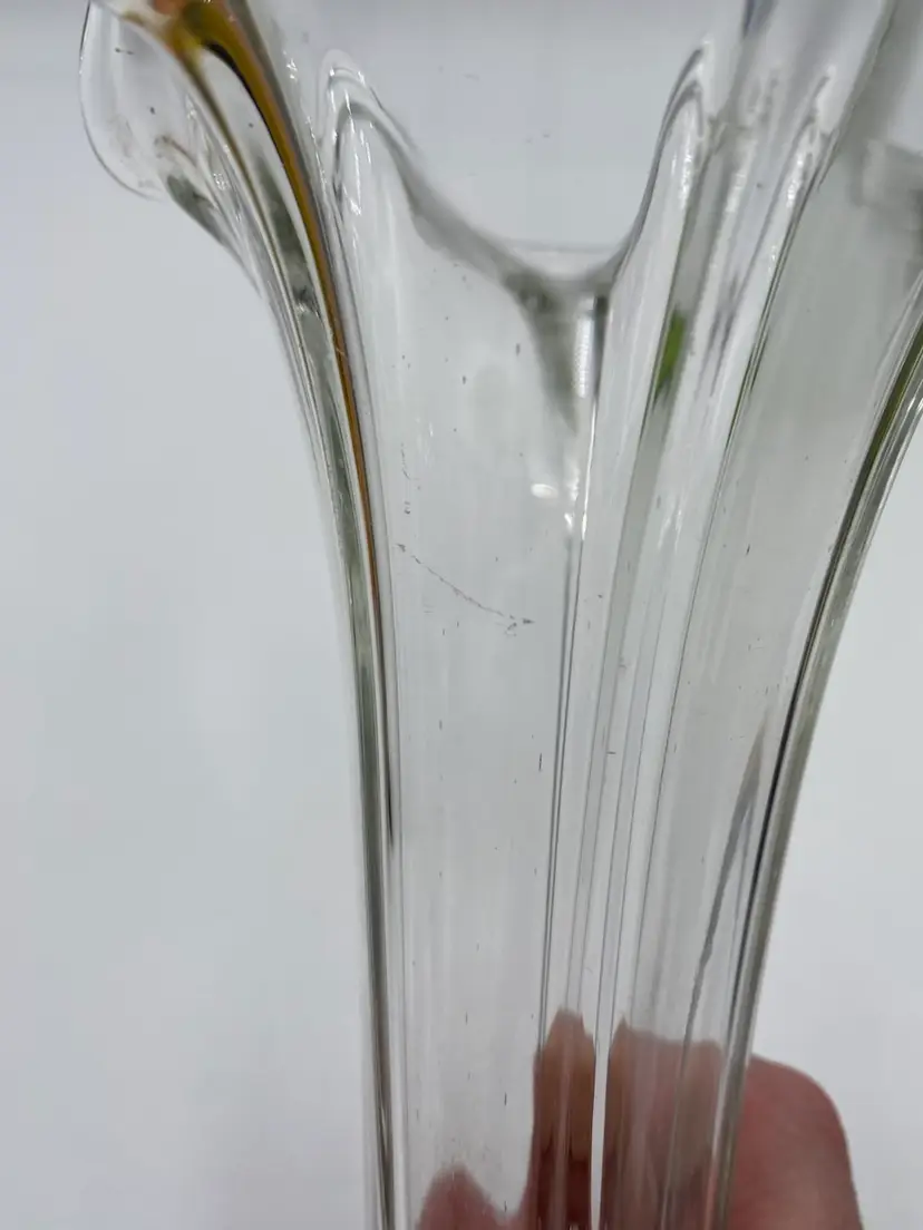 The vase is in very good condition. There are no chips or cracks. There is one slight scratch on the outside of on of the back panels (see picture 5).