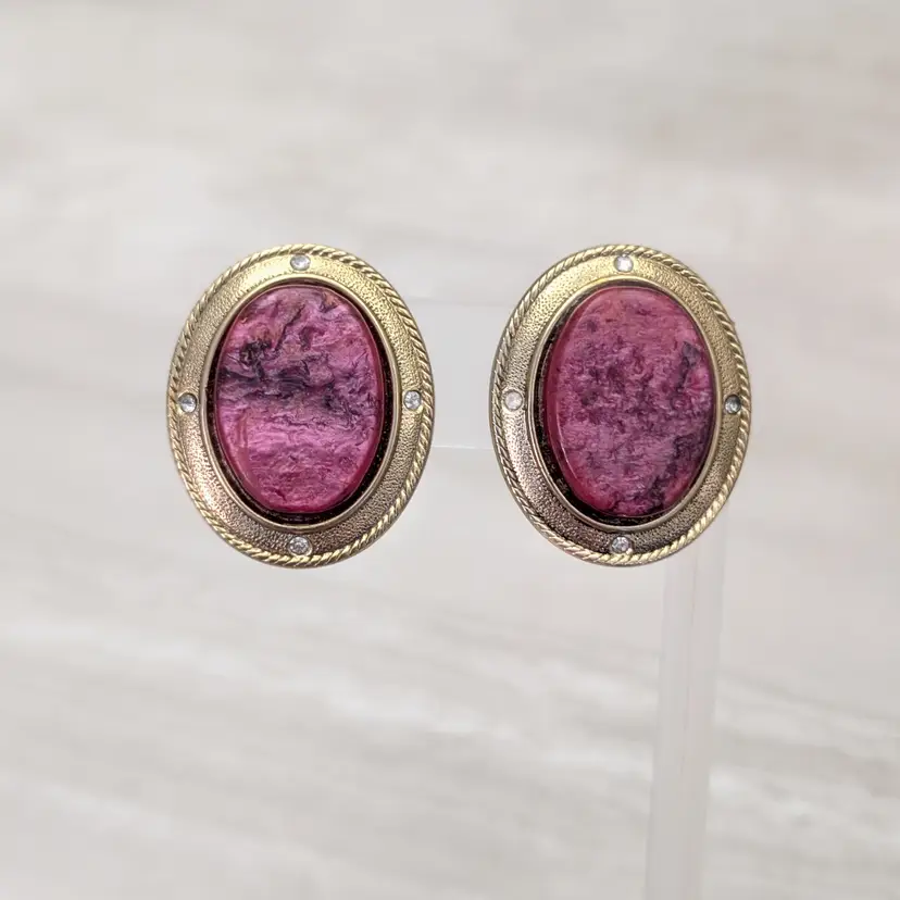 Earrings are tested and photographed on a thin/smooth earring stand (not included) to show that the clips are in working order.