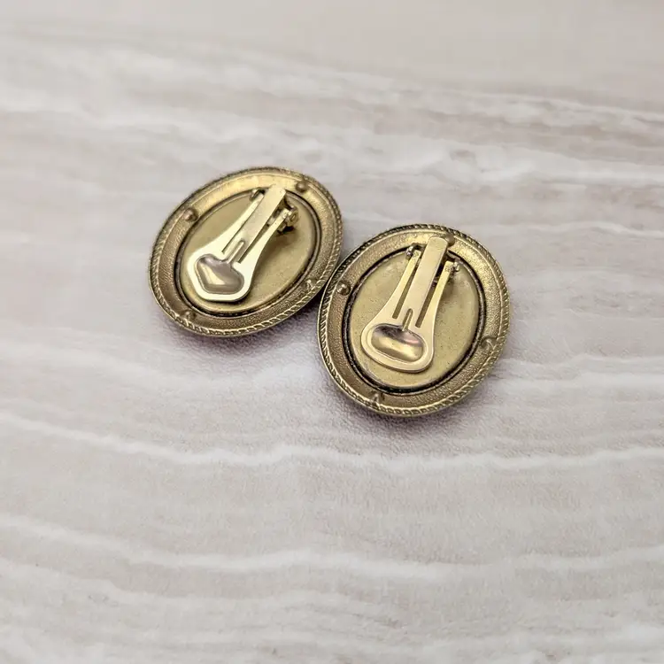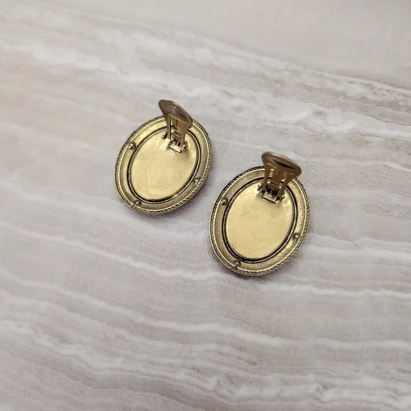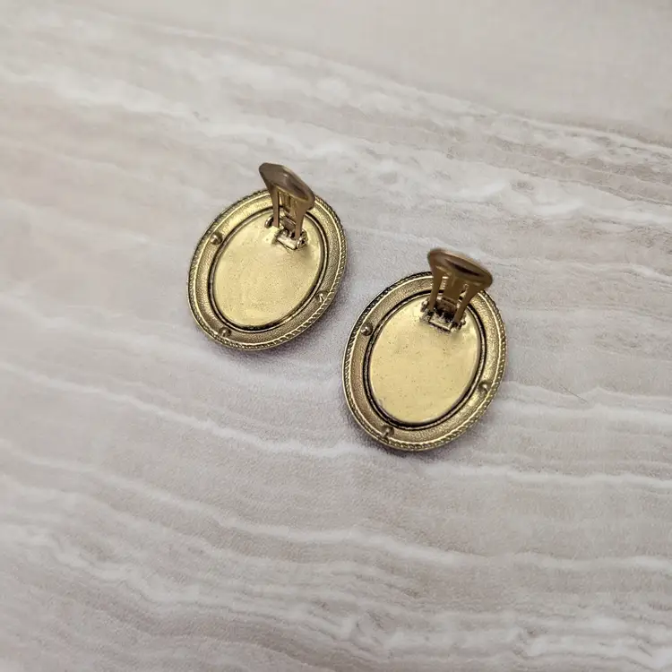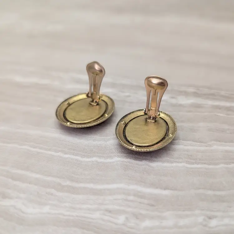 Preowned vintage earrings, sold as shown - I am unsure of material type(s) because of this. Pictures show different angles for you to review - while I attempt to note any defects, some tarnish/signs of wear may be visible that are not otherwise stated.
