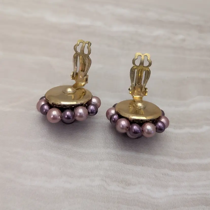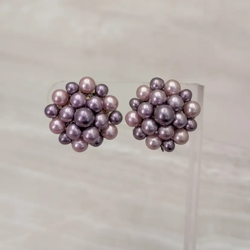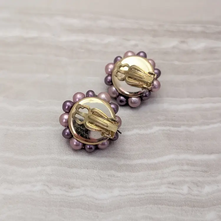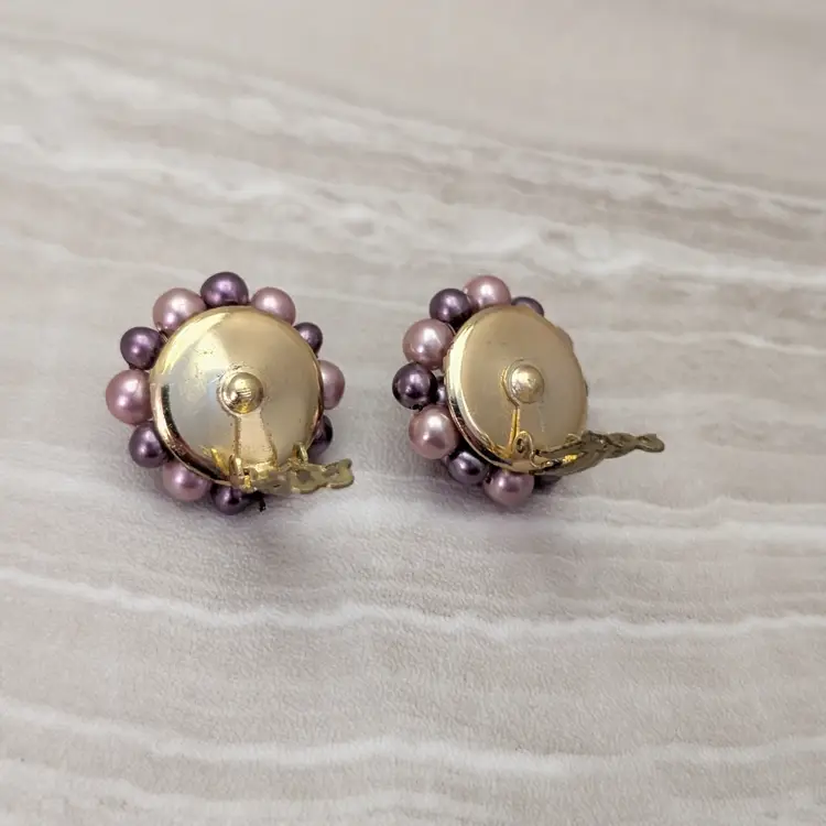 Vintage Clip On Earrings 1" Purple Tones Cluster Style Stylish Retro Japan