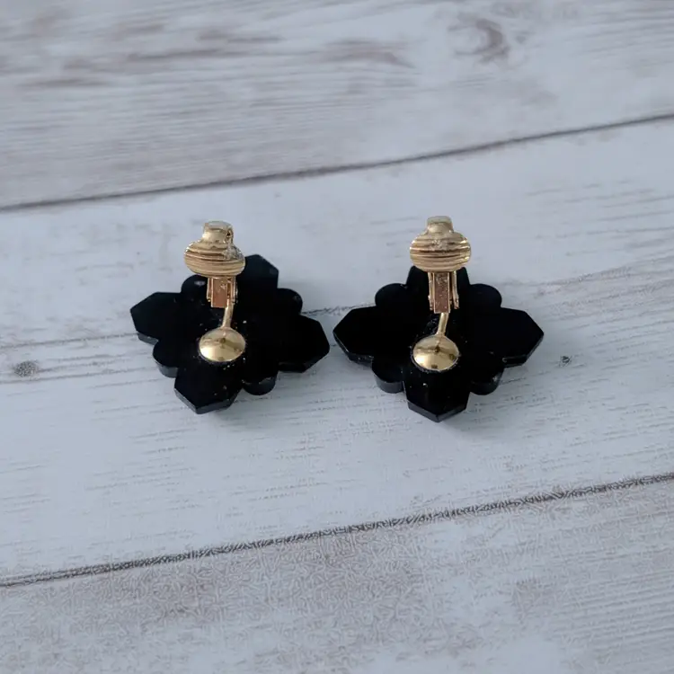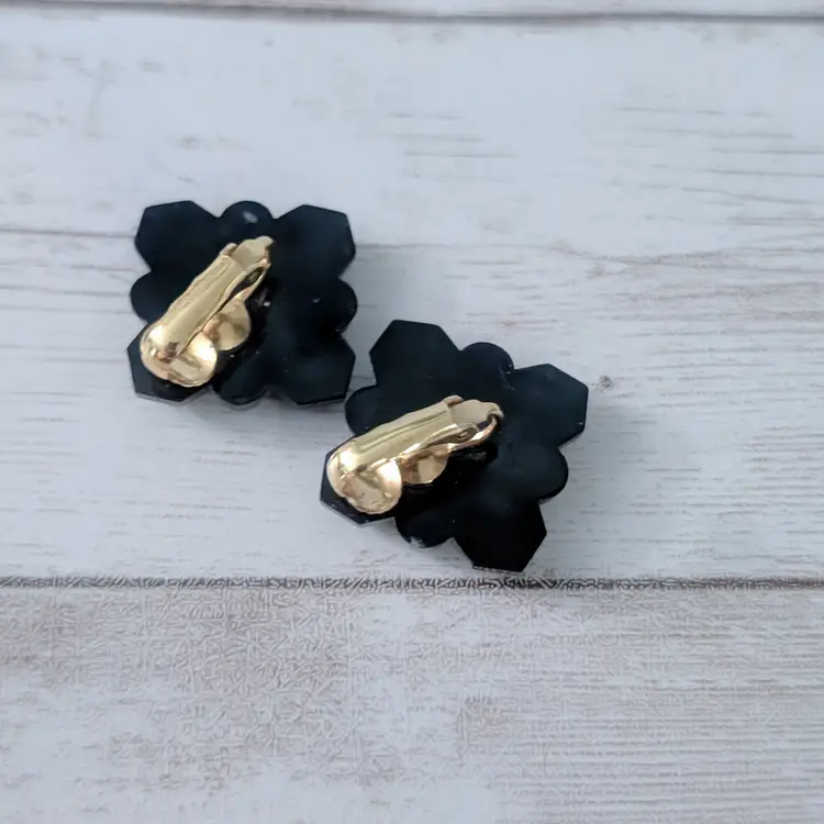 Earrings are tested and photographed on a thin/smooth earring stand (not included) to show that the clips are in working order.