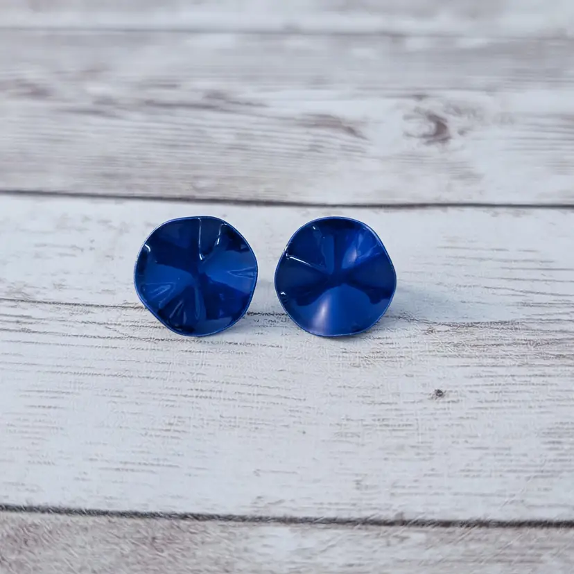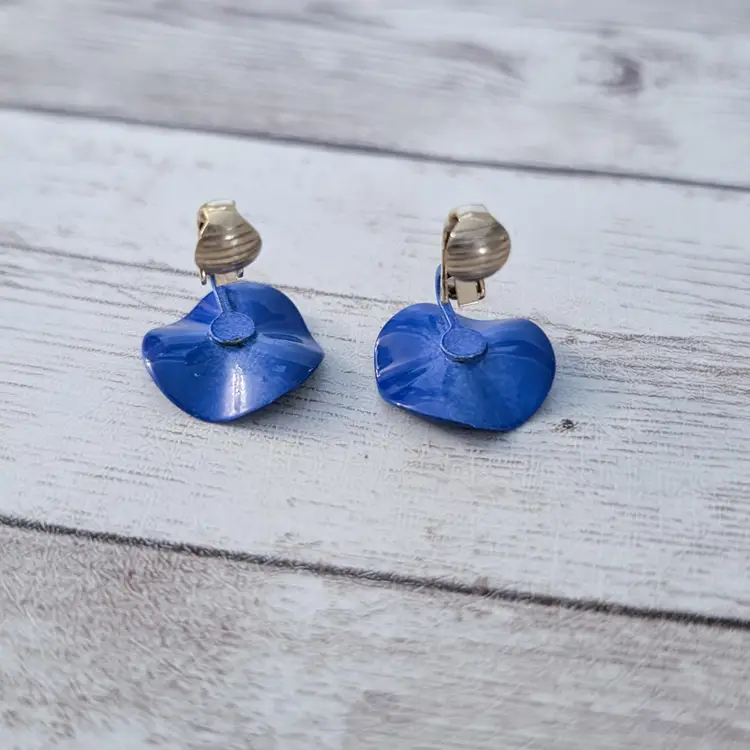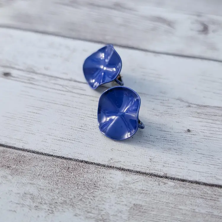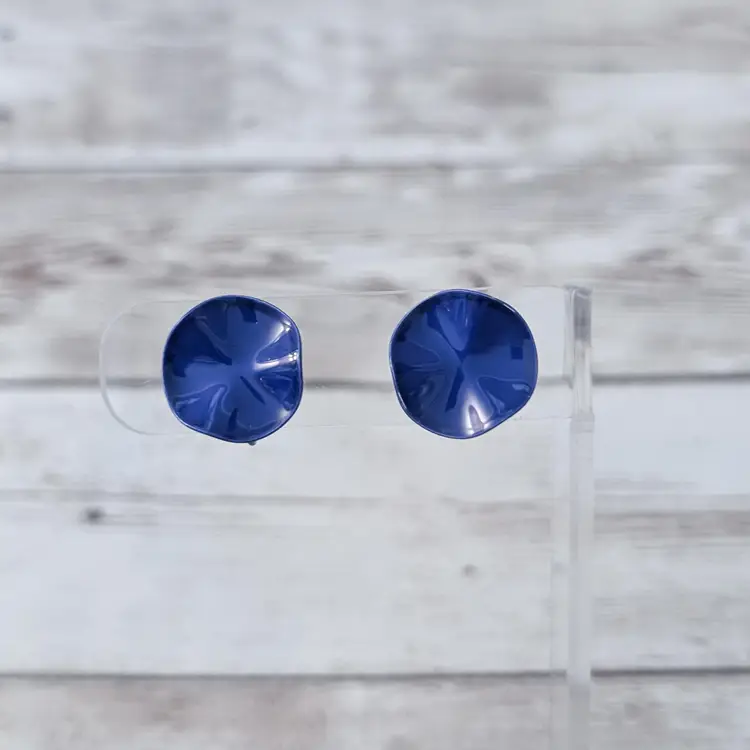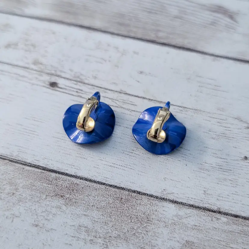 Vintage Clip On Earrings Blue Pushed In Circle Retro