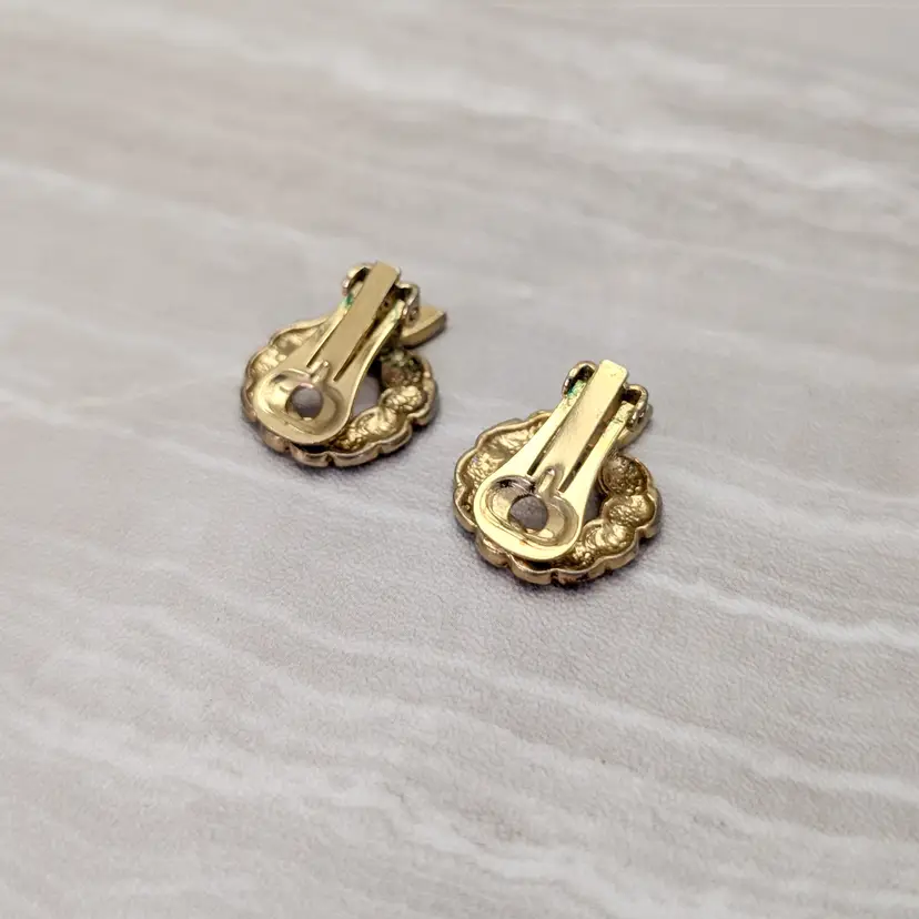 Preowned vintage earrings, sold as shown - I am unsure of material type(s) because of this. Pictures show different angles for you to review - while I attempt to note any defects, some tarnish/signs of wear may be visible that are not otherwise stated.