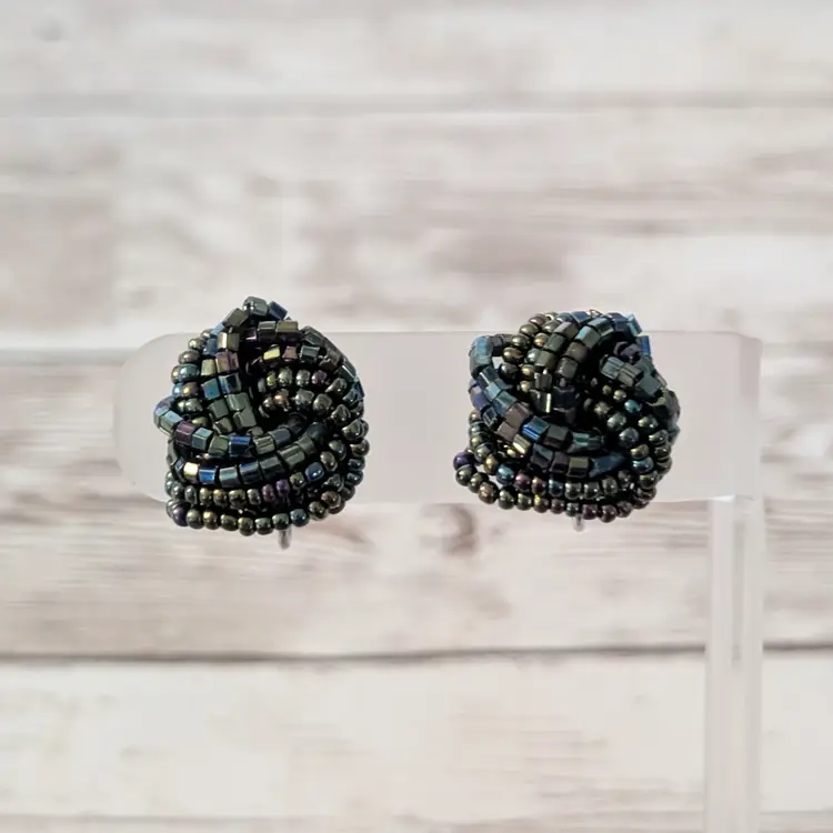 Vintage Clip On Earrings Dark Tones Wrap Design Statement
