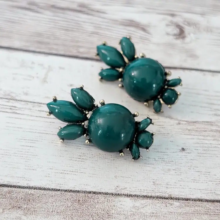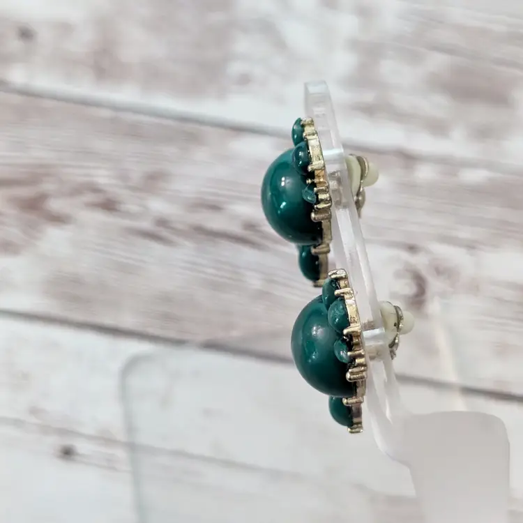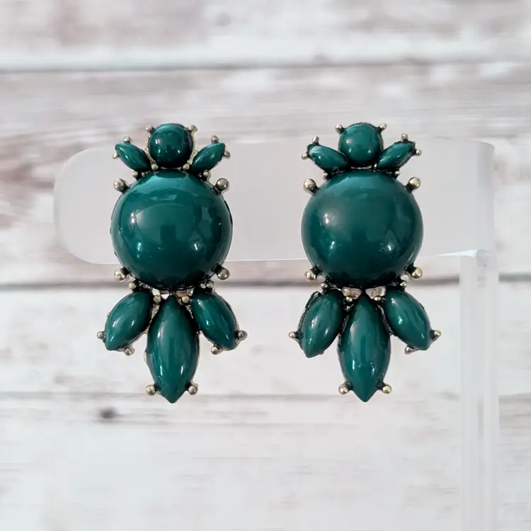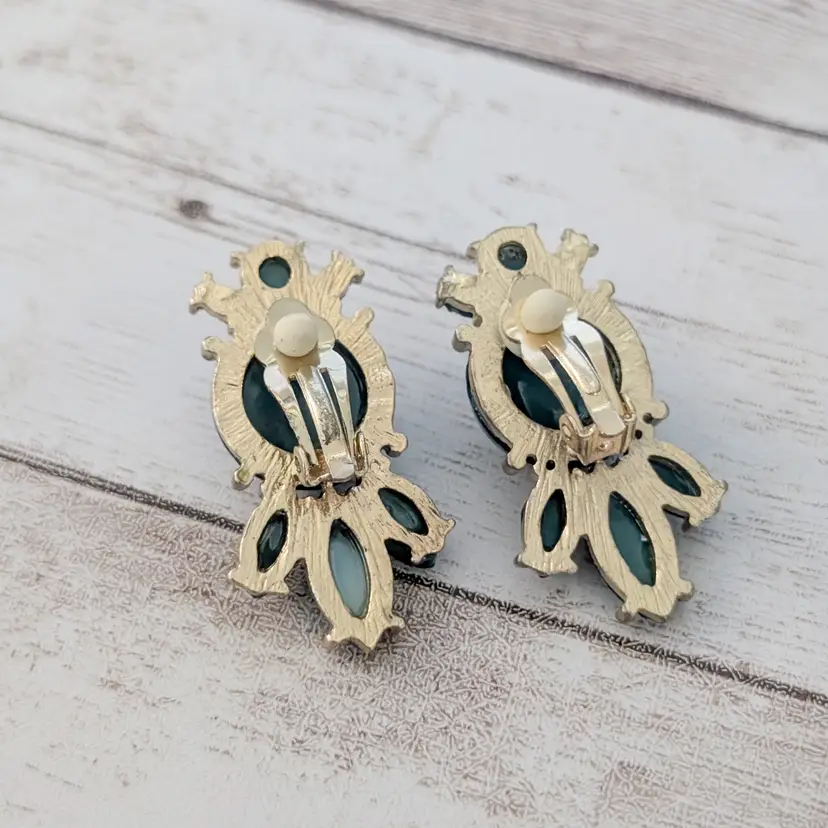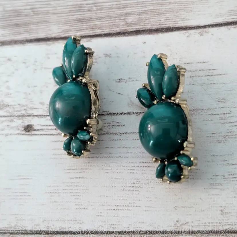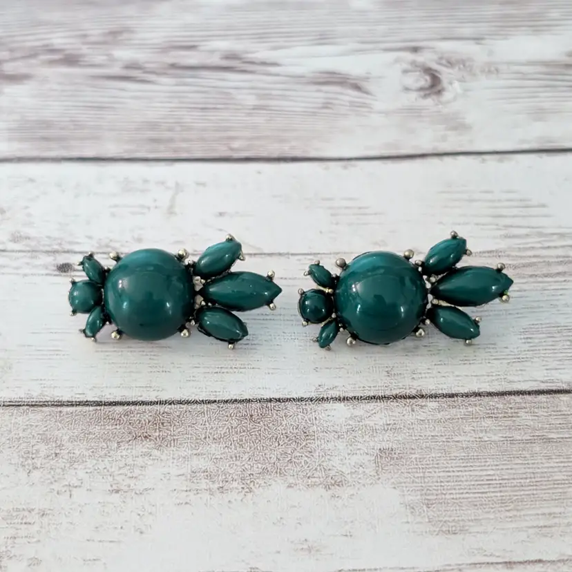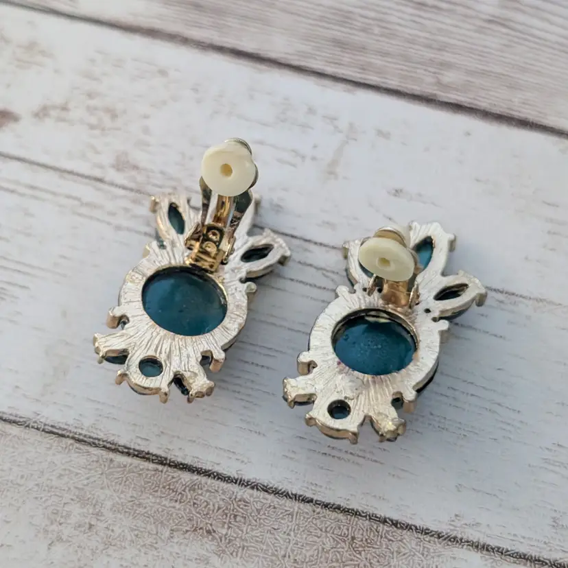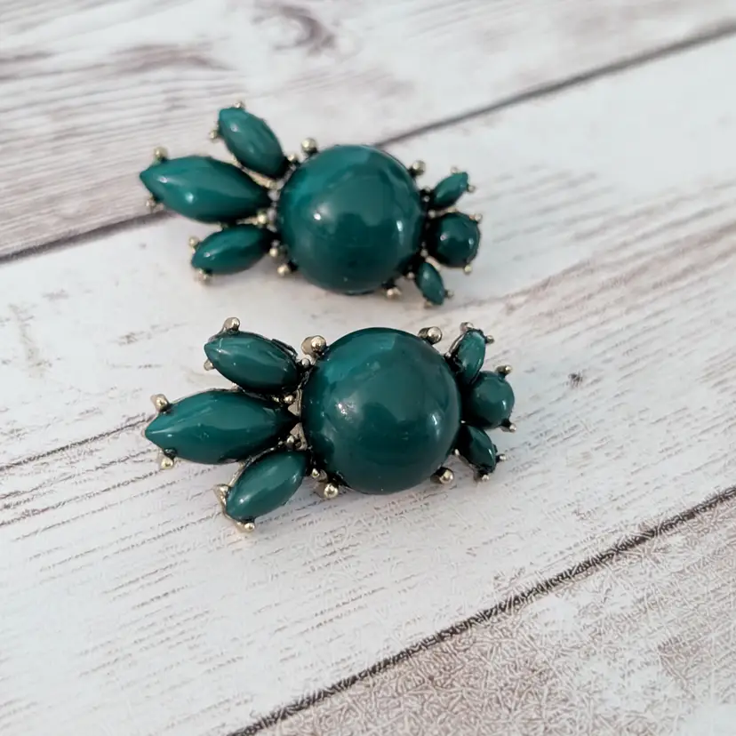 Vintage Clip On Earrings Extra Large Dark Teal Statement Just Over 1 & 3/8"