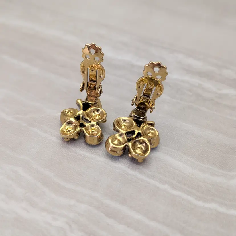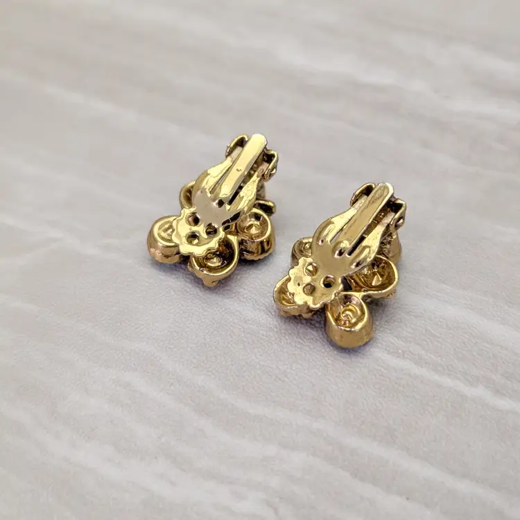 Preowned vintage earrings, sold as shown - I am unsure of material type(s) because of this. Pictures show different angles for you to review - while I attempt to note any defects, some tarnish/signs of wear may be visible that are not otherwise stated.