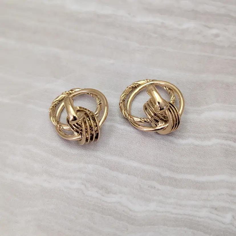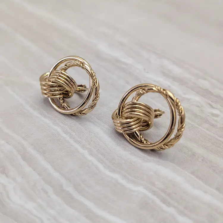 Vintage Clip On Earrings Gold Tone Door Knocker Style Statement Earrings