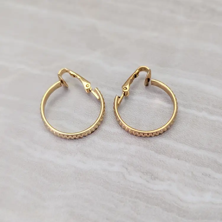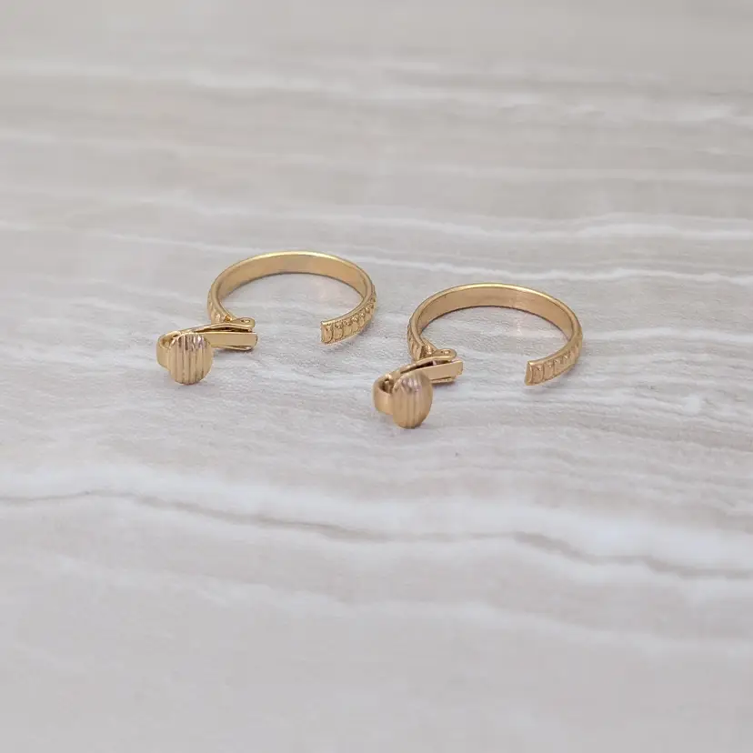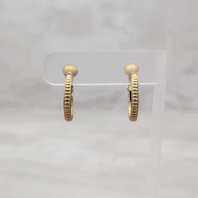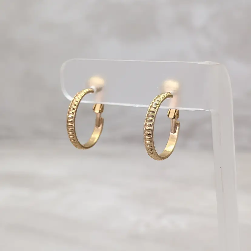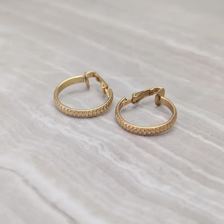 Vintage Clip On Earrings Gold Tone Hoops with Ridged Pattern 7/8"