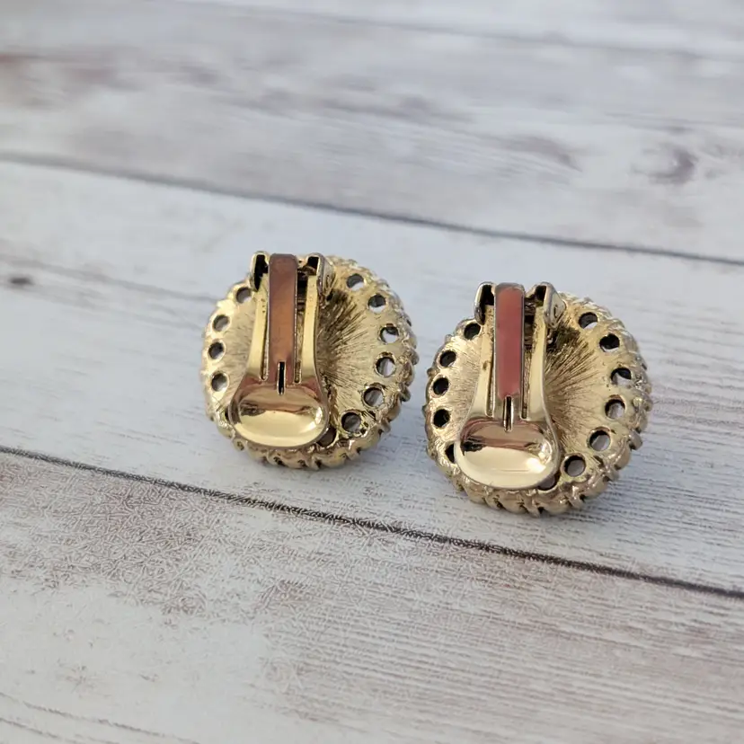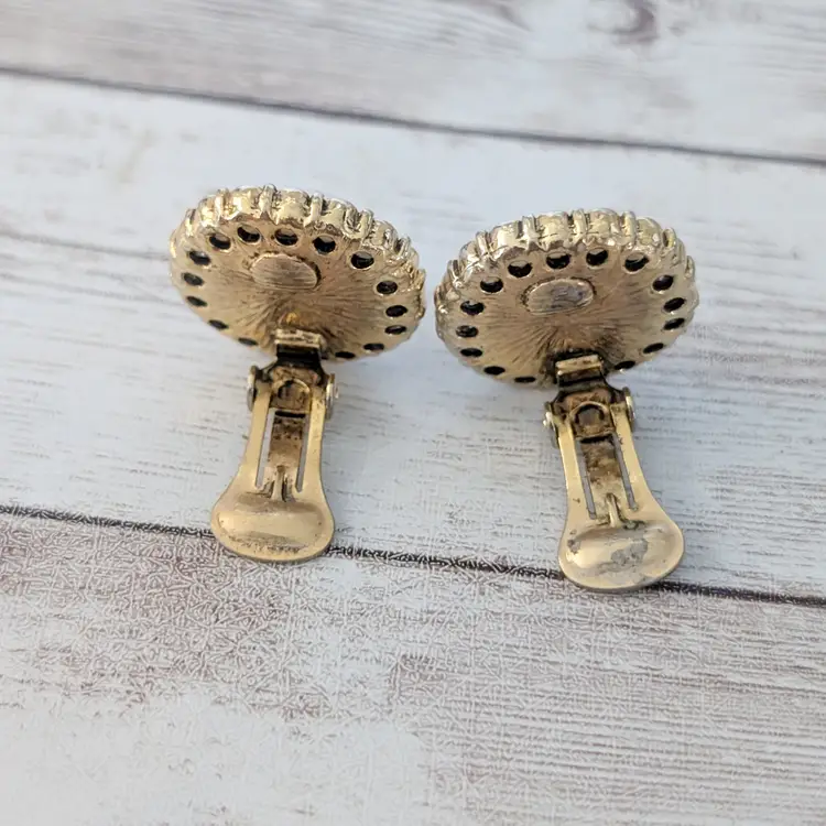 Preowned vintage earrings, sold as shown - I am unsure of material type(s) because of this. Pictures show different angles for you to review - while I attempt to note any defects, some tarnish/signs of wear may be visible that are not otherwise stated.