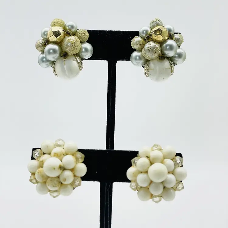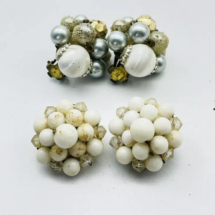 Vintage Clip On Earrings Lot of 2 GERMANY Cluster Bead and JAPAN Faux Pearl