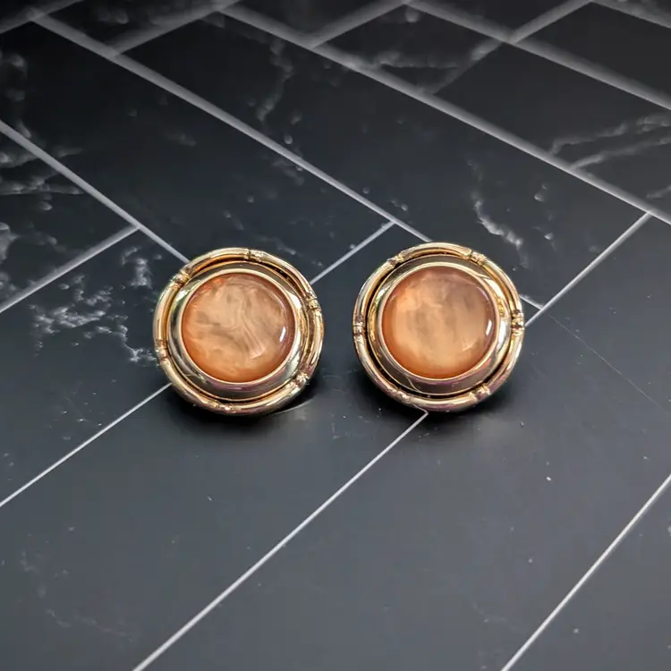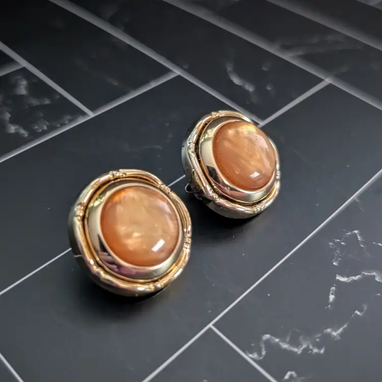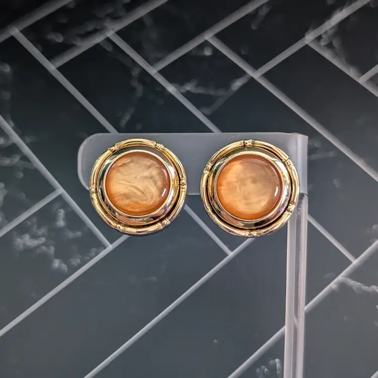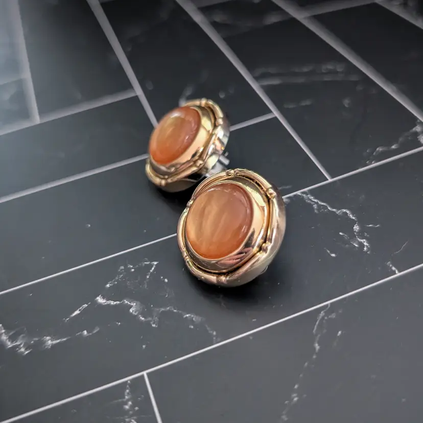 Vintage Clip On Earrings Orange & Gold Tone Stylish & Elegant 1"