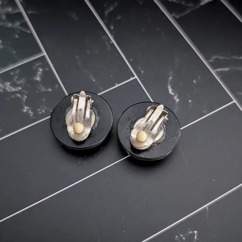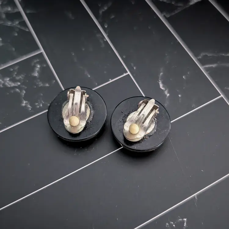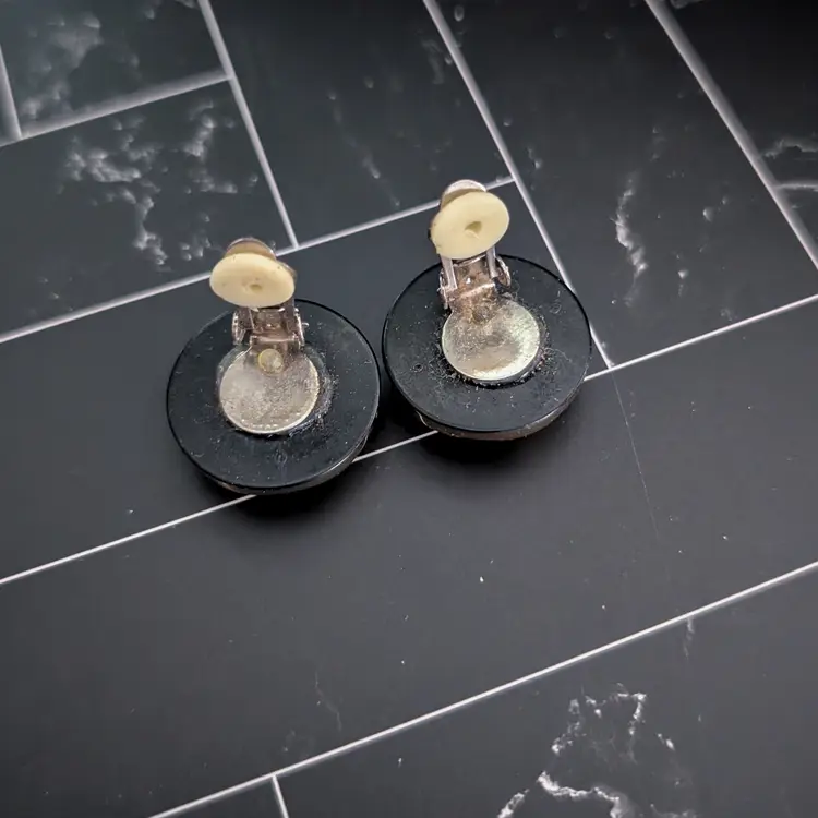 Preowned vintage earrings, sold as shown - I am unsure of material type(s) because of this. Pictures show different angles for you to review - while I attempt to note any defects, some tarnish/signs of wear may be visible that are not otherwise stated.