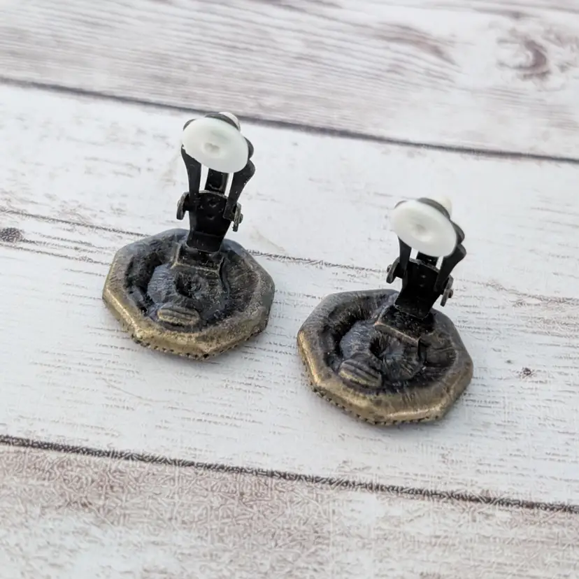 Earrings are tested and photographed on a thin/smooth earring stand (not included) to show that the clips are in working order.