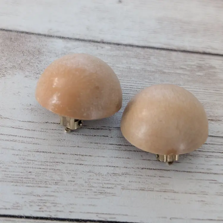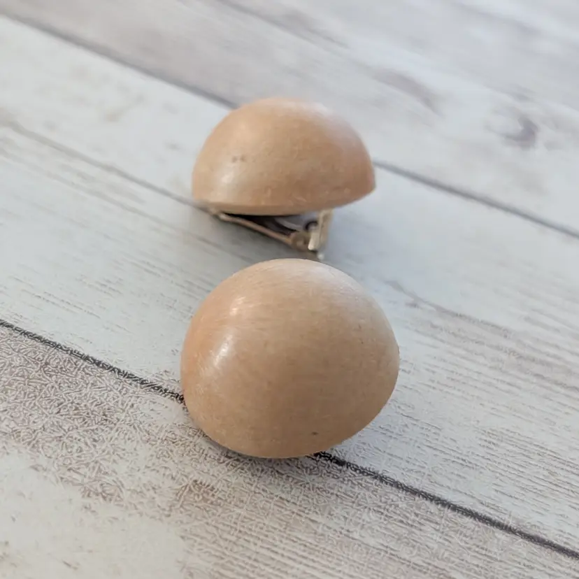 Vintage Clip On Earrings Retro Tan Domed Just Over 7/8"