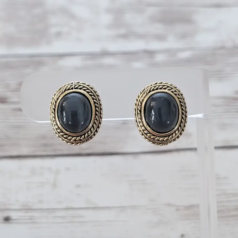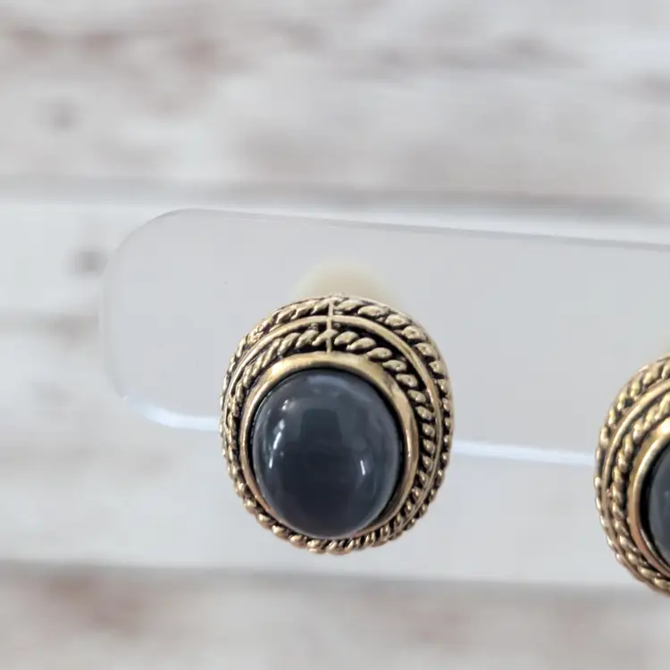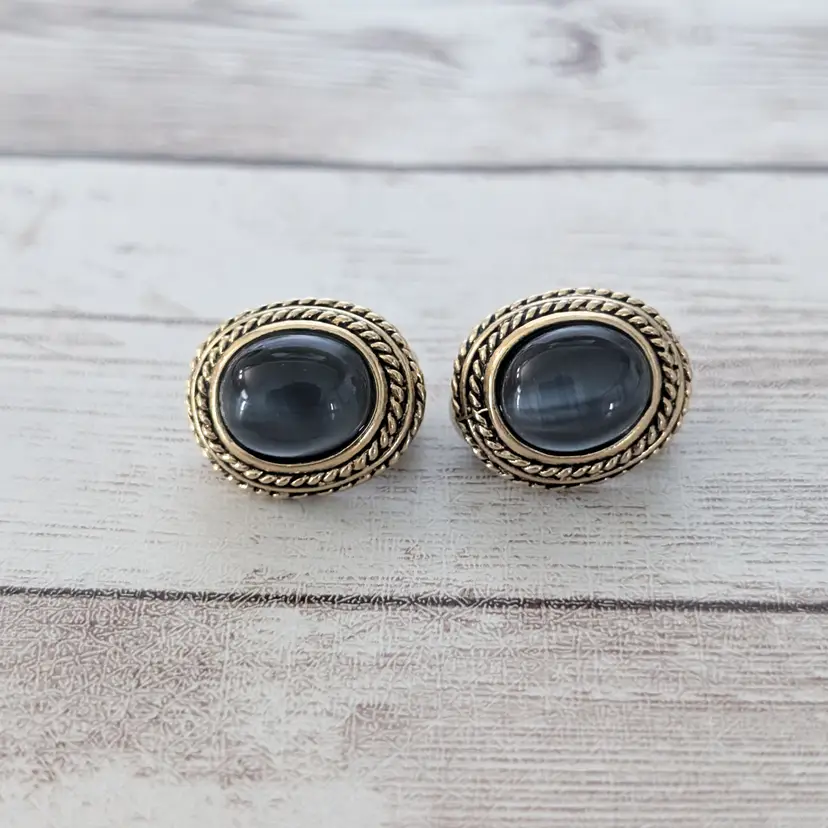 Vintage Clip On Earrings Smokey Tone Center and Gold Tone Halo